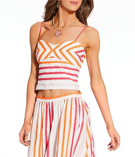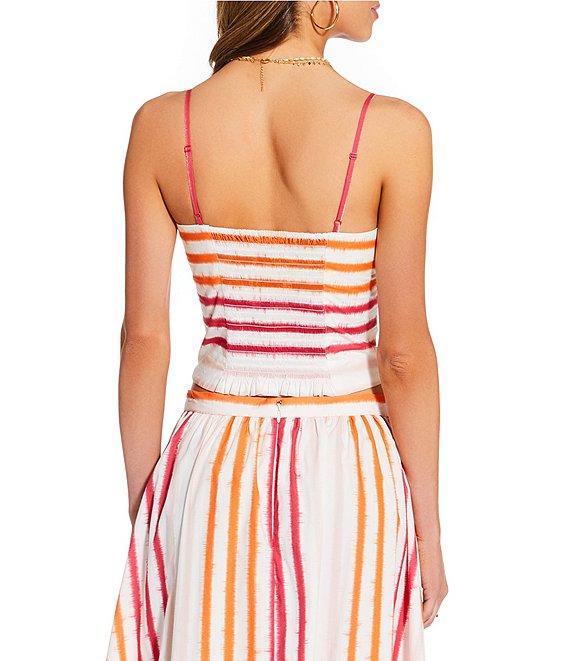 From Antonio Melani x Stephanie Covington, this tank features: Poplin fabrication Placement stripe print Sweetheart neckline Sleeveless Adjustable spaghetti straps Back elastic smocking Tank silhouette Fully lined Side zipper with hook & eye closure Approx. 17.5" length Self: cotton; lining: Viscose Professional dry cleaning only Imported.