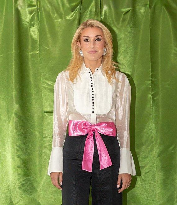 From Antonio Melani x The Nat Note, this blouse features: Organza/ twill fabrication Collar neckline Long sleeves Button front closure Approx. 25.75" length Polyester Dry clean *Bow belt sold separately Imported.