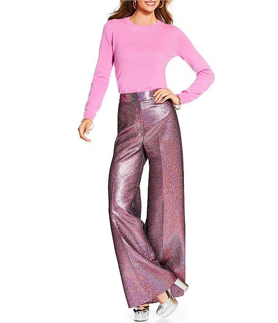 From Antonio Melani x The Nat Note, these pants feature: Holographic jacquard fabrication Straight leg Front zip closure Approx. 42.5" length Polyester/cotton/metallic Dry clean Imported.