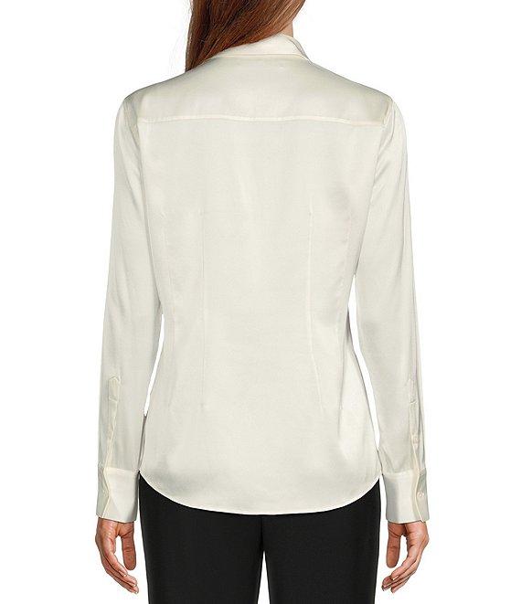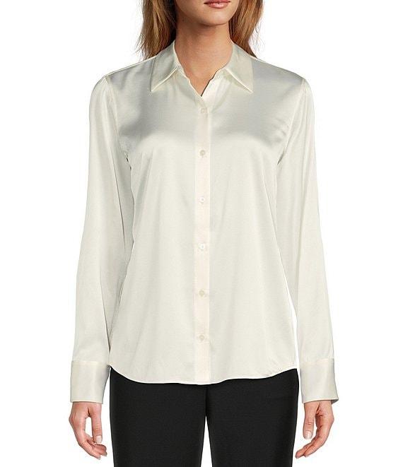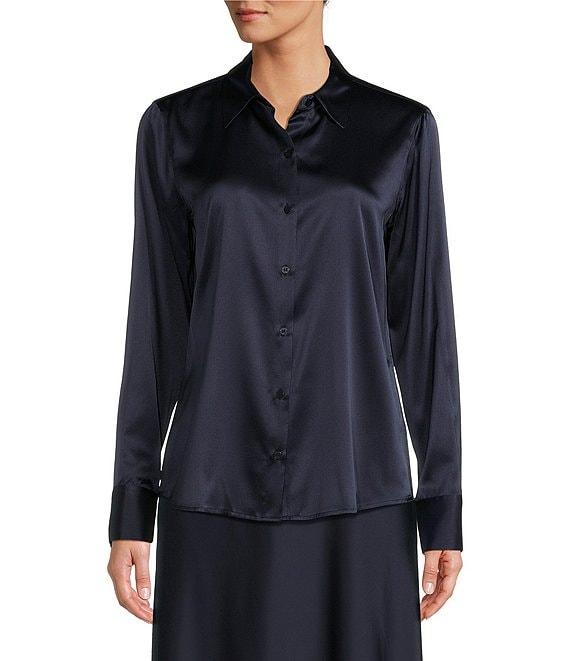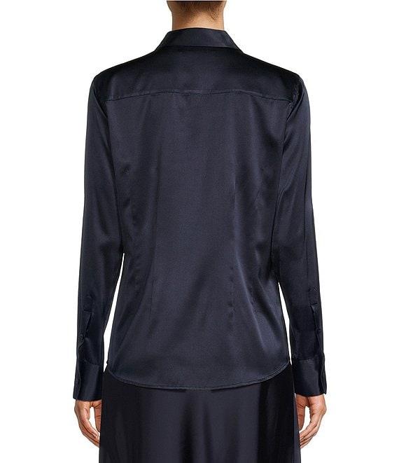 Antonio Melani Yana Button Front Point Collar Long Sleeve Stretch Silk Charmeuse Blouse