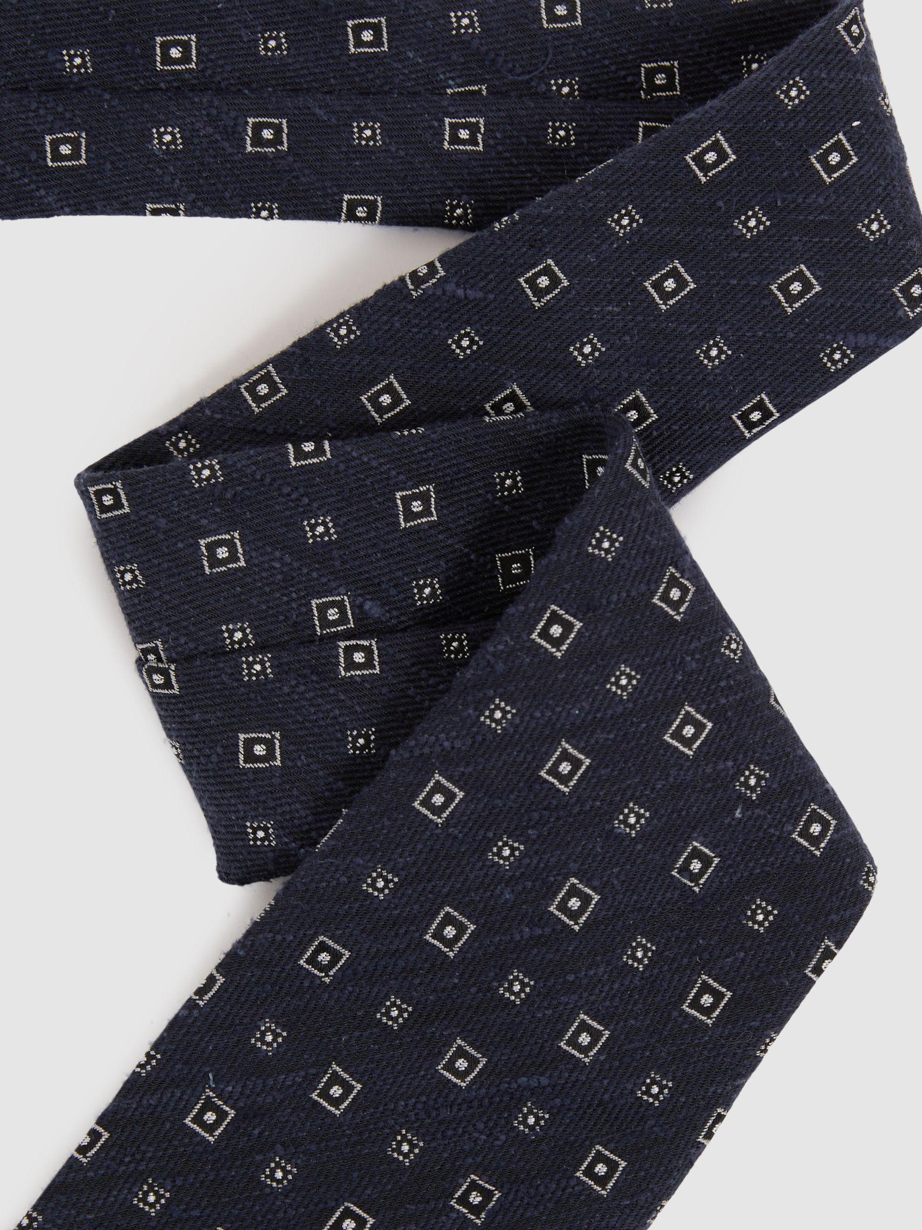 Anzio Navy Silk Blend Foulard Medallion Print Tie