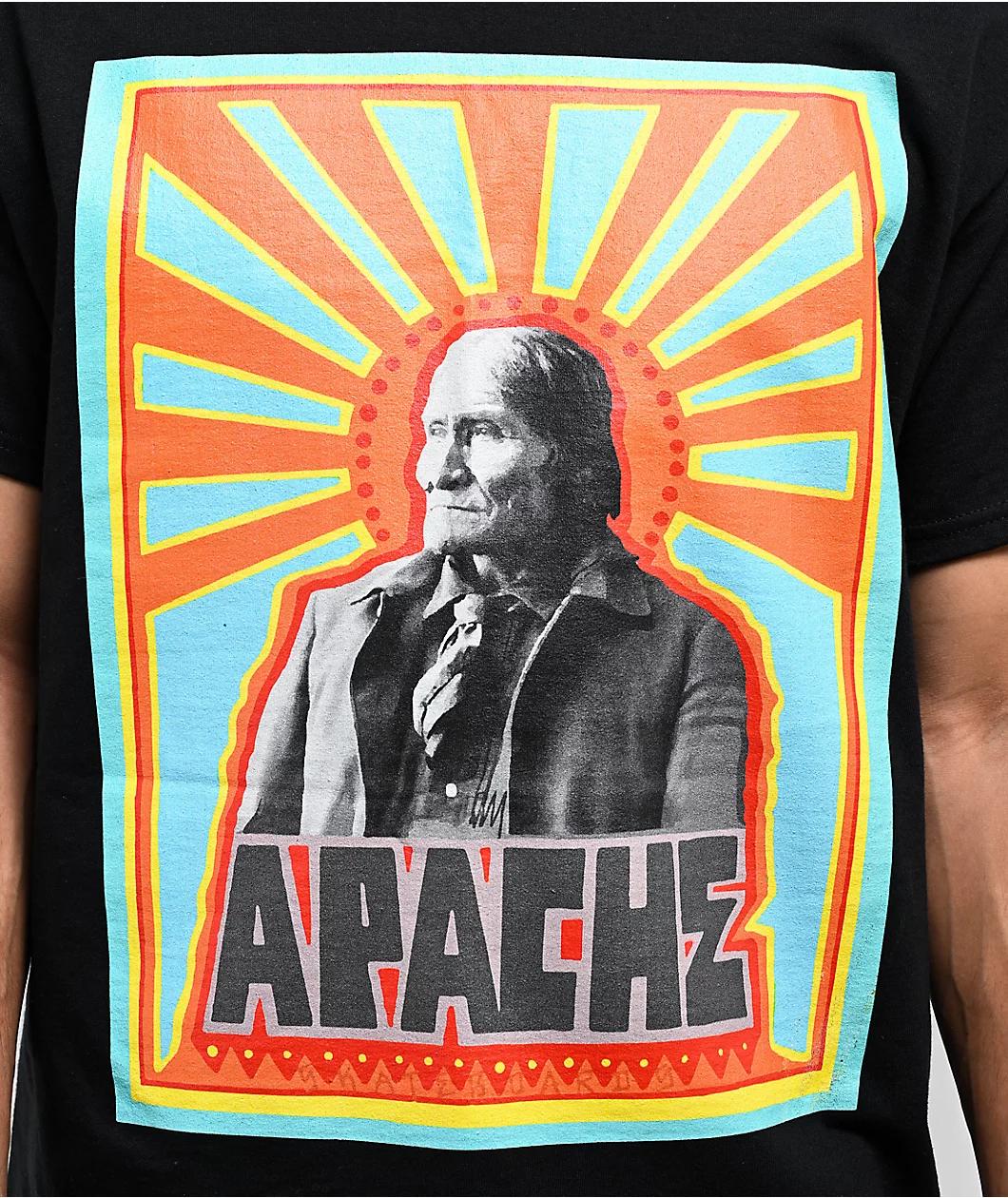 Commemorating history with a solid black colorway, the Geronimo t-shirt arrives from Apache Skateboards with a screen-printed image of their noble indigenous leader; highlighted by a colorful frame on the front. Honoring the famed Apache tribe milita