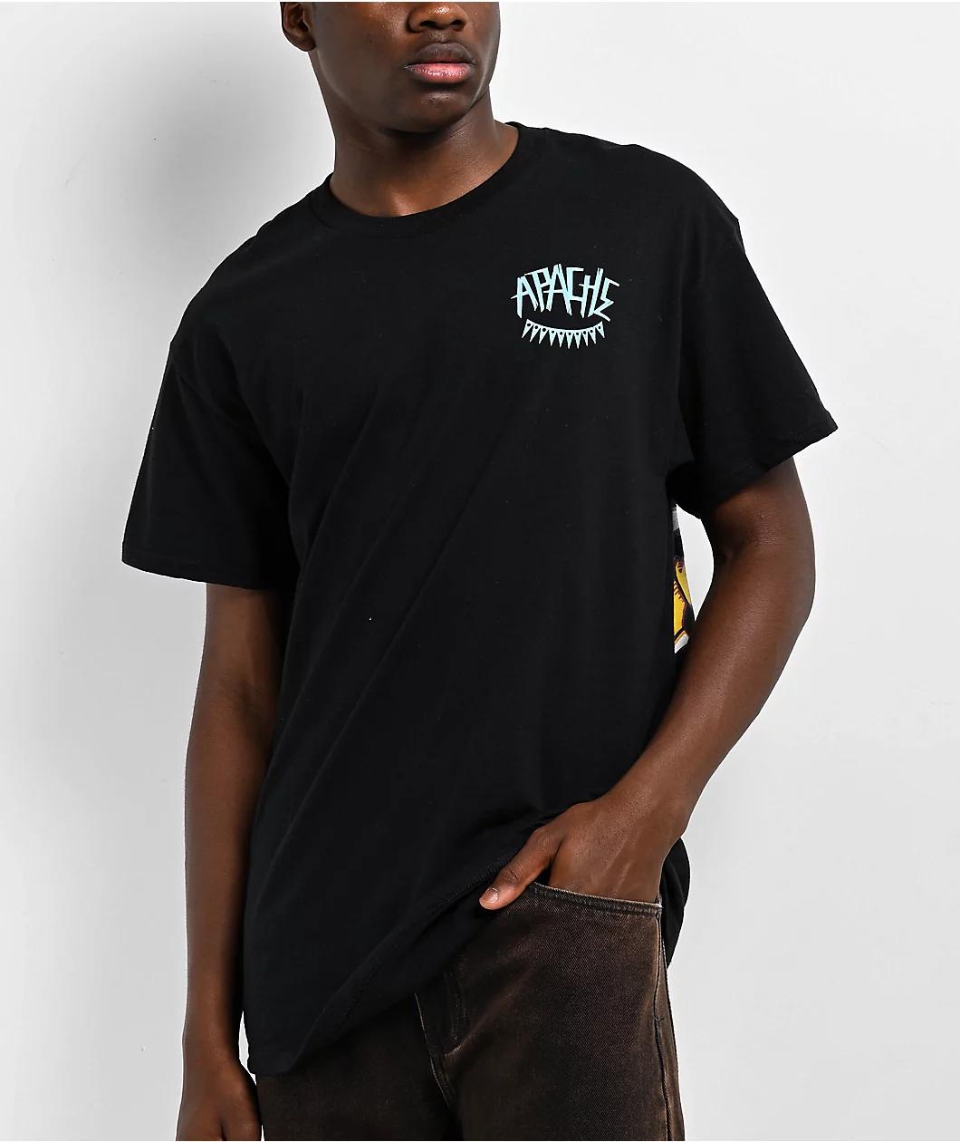 From native-founded brand Apache Skateboards, the Push t-shirt arrives in a solid black colorway with printed graphics on the front and back. Lending a minimalist approach on the left chest with subtle branding, the back employs a huge illustration o