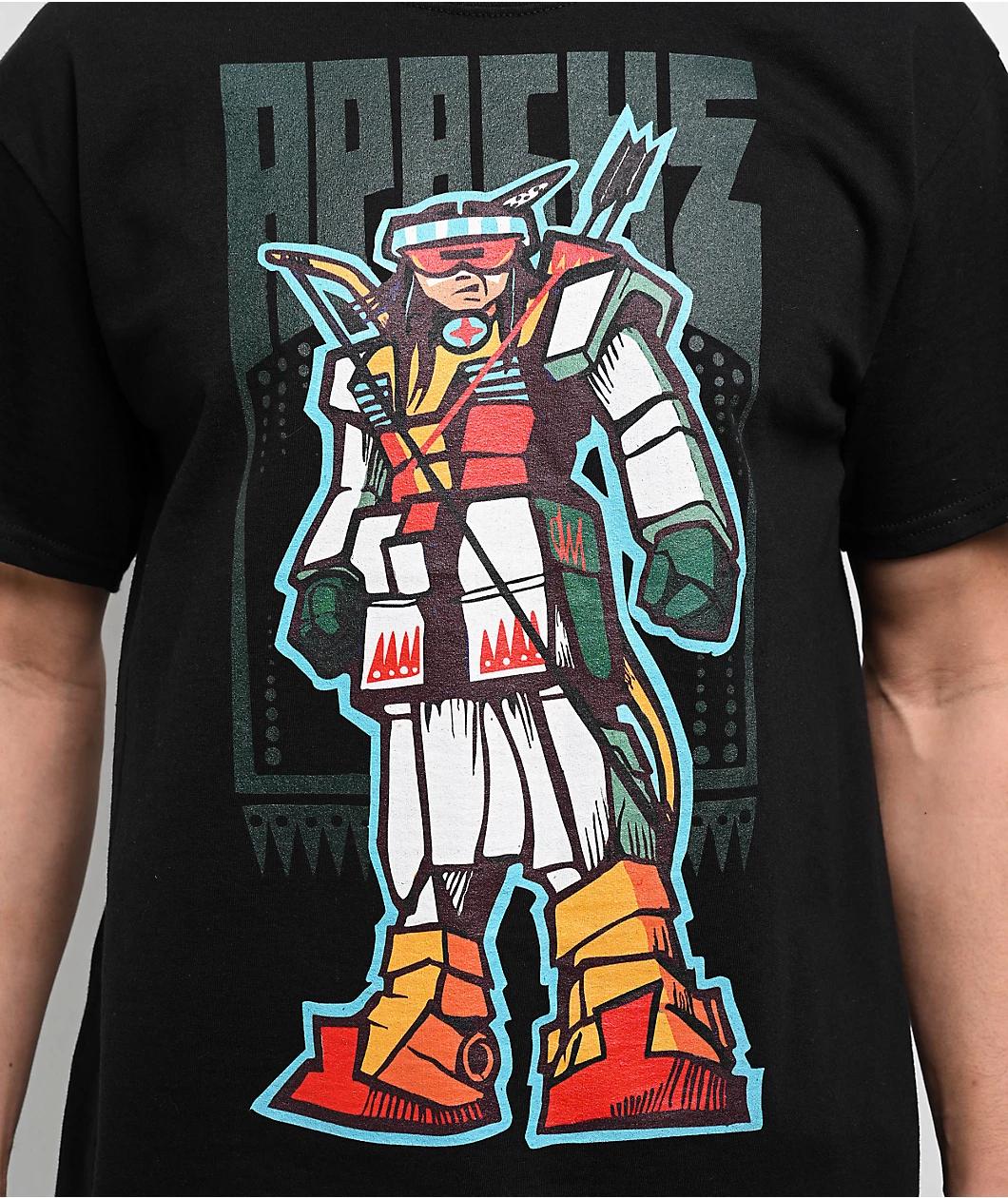 The minds at Apache Skateboards present the Robot Warrior t-shirt in a classic black colorway. A large screen-printed graphic on the chest depicts a robotic Native American warrior with a bow and arrow for a fierce vibe. Branding in the background ad