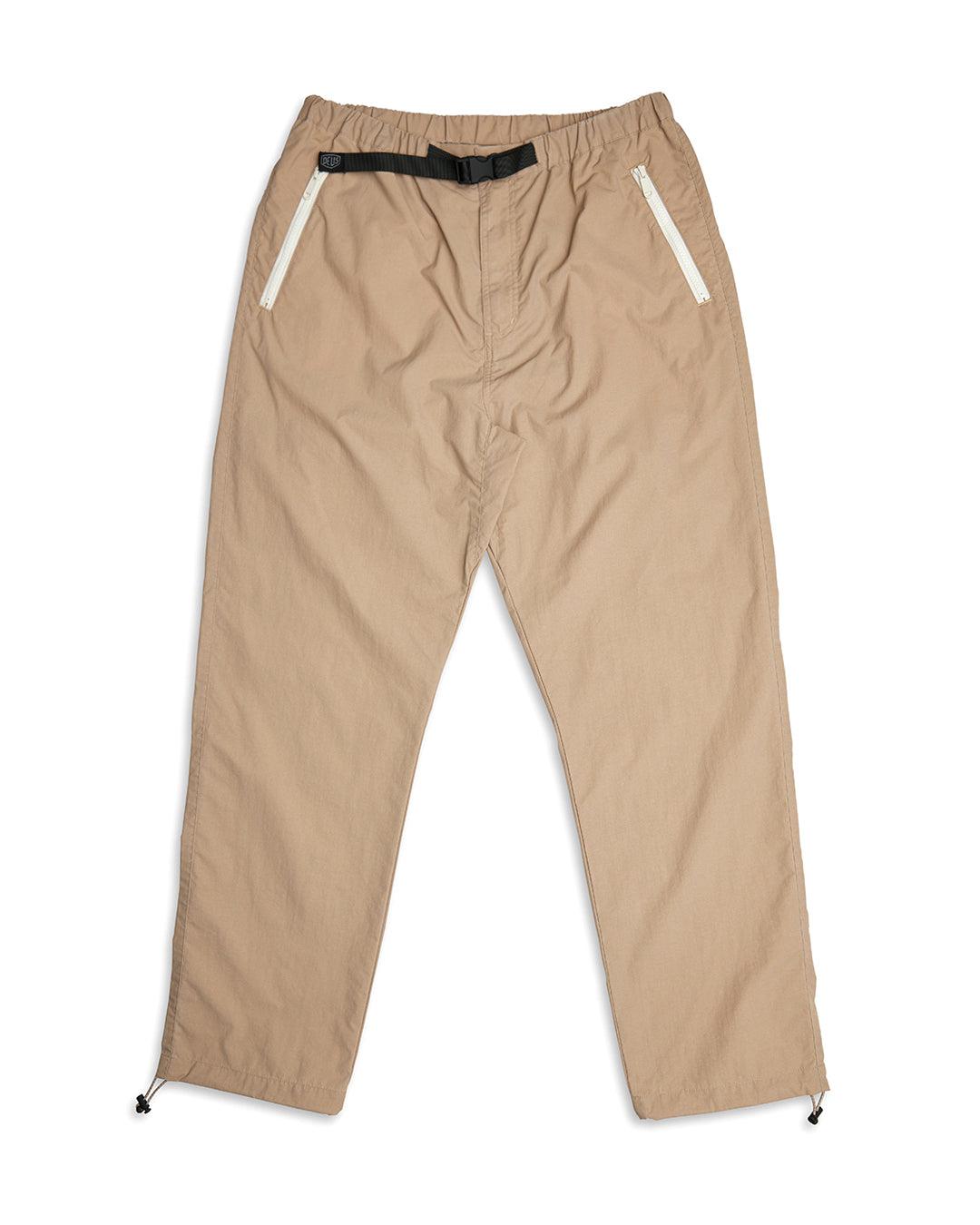 Relaxed Fit Pant With Branded Label Above Back Pocket, Nylon Webbing Belt At Waist, Zip Fly Closure, Front And Back Jet Zip Pockets Closure, Adjustable Hem Detail, In A 100% Printed Recycled Nylon Fabrication With Water Resistant Pu Backing And A Heavy Enzyme Stone Wash