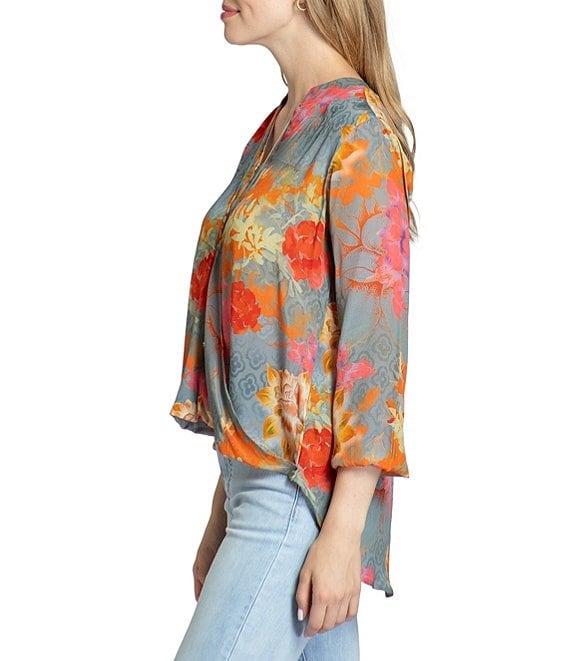 APNY Boho Floral V-Neck Long Sleeve Crossover Top