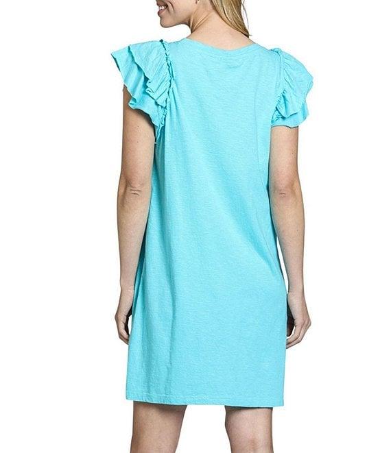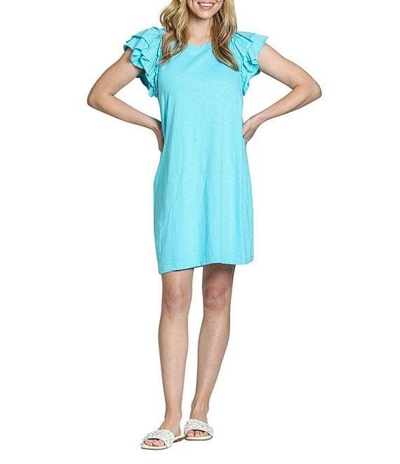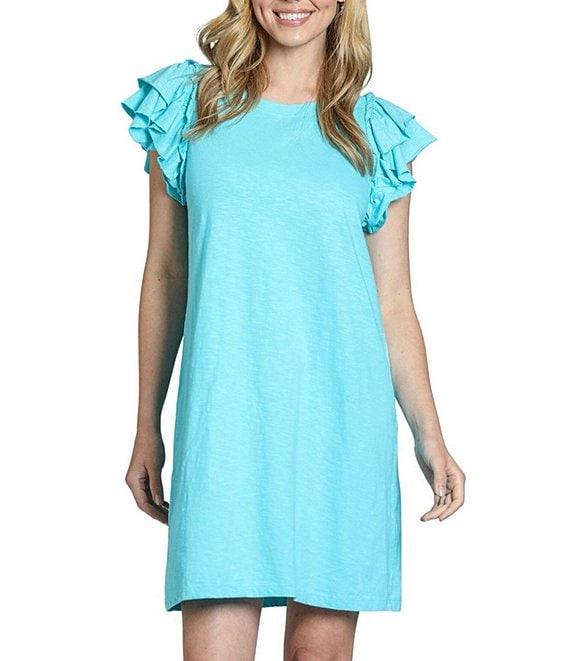 APNY Crew Neck Short Sleeve Double Ruffle Shift Dress