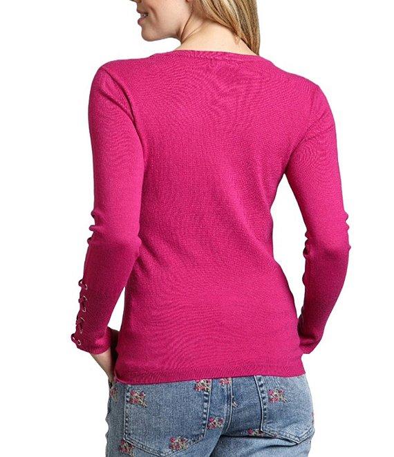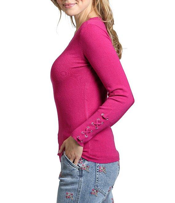 APNY Knit Crew Neck Long Grommet Lace Up Sleeve Sweater