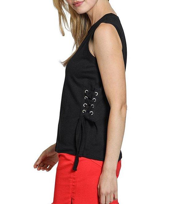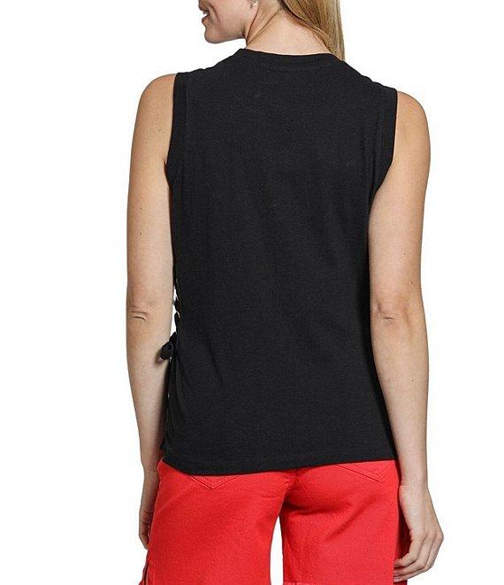 APNY Knit Crew Neck Sleeveless Lace Up Tee