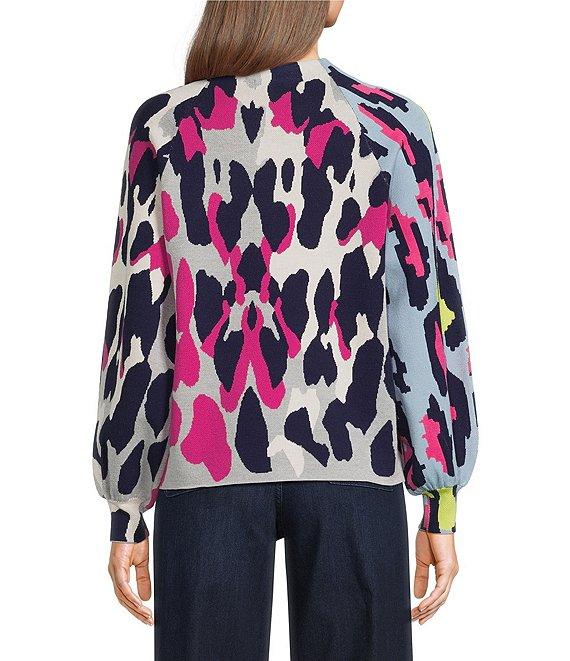 APNY Knit Leopard Print Funnel Neck Long Puff Sleeve Sweater