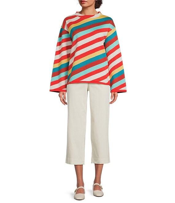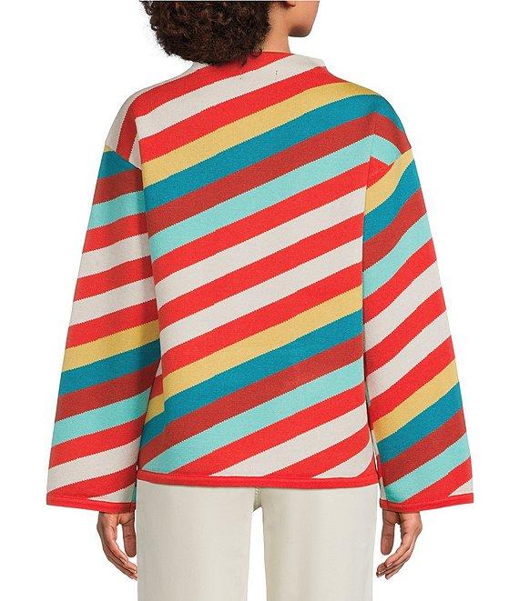 APNY Knit Stripped Mock Neck Long Sleeve Top