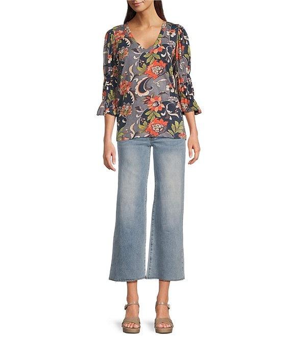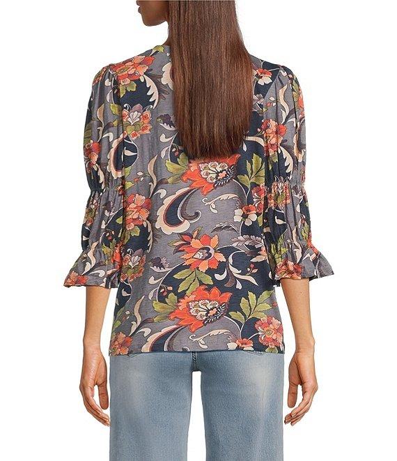 APNY Printed V-Neck 3/4 Renaissance Sleeve Tee