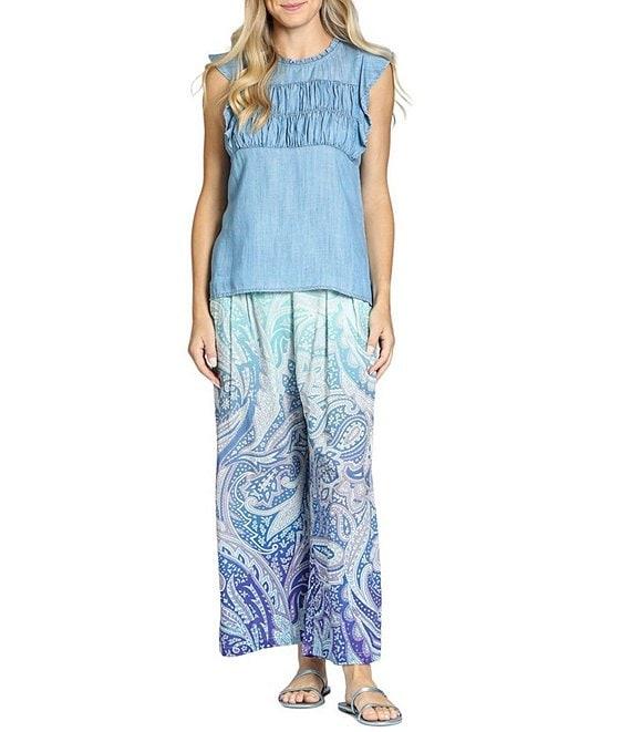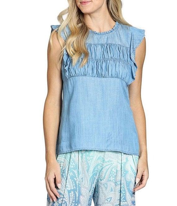 APNY Round Neck Sleeveless Ruffle Smocked Top