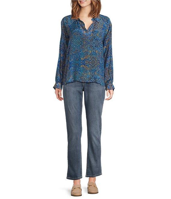 APNY Woven Printed Split V-Neck Long Sleeve Blouse