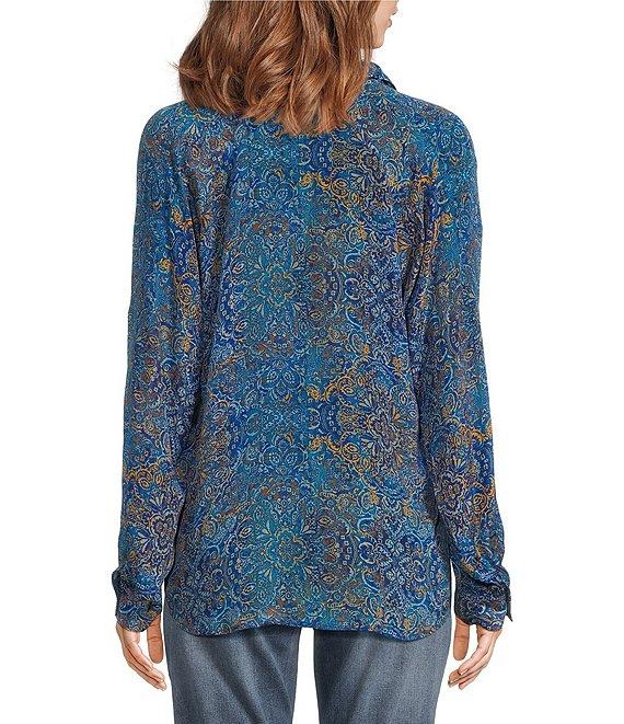 APNY Printed Spread Collar Neckline Long Sleeve Top