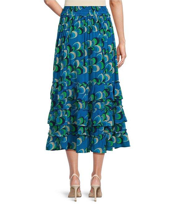 APNY Woven Coordinating Abstract Print Ruffle A-Line Midi Skirt