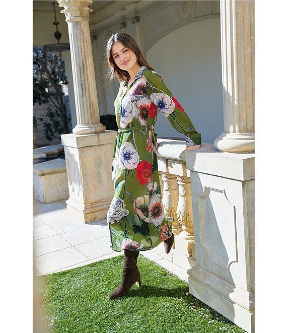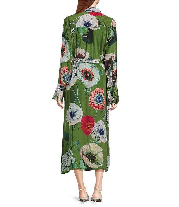 APNY Woven Floral Print Split Neck Long Sleeve Button Down Maxi Dress