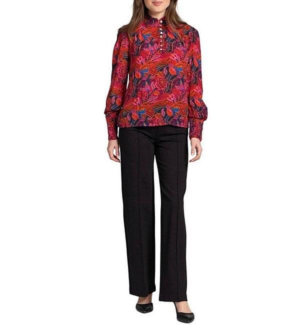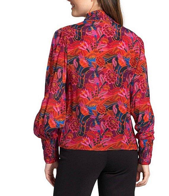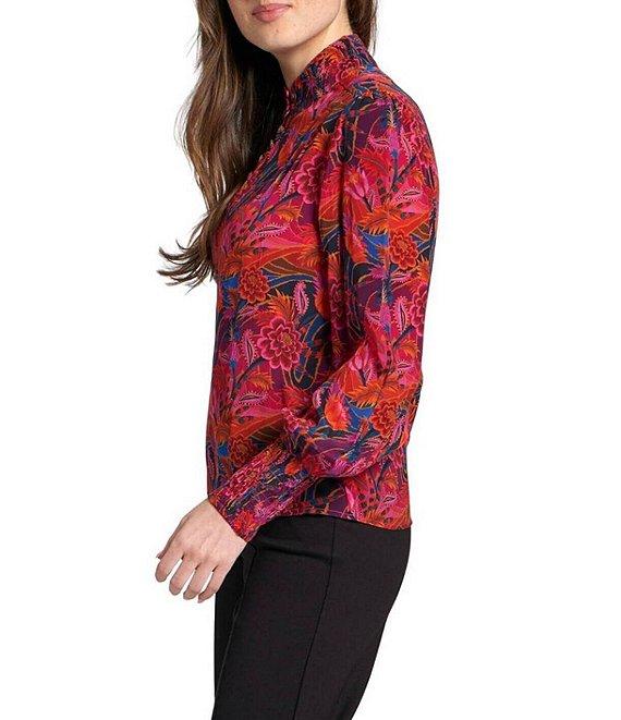 APNY Woven Floral Printed High Neck Long Puff Sleeve Ruched Detail Blouse
