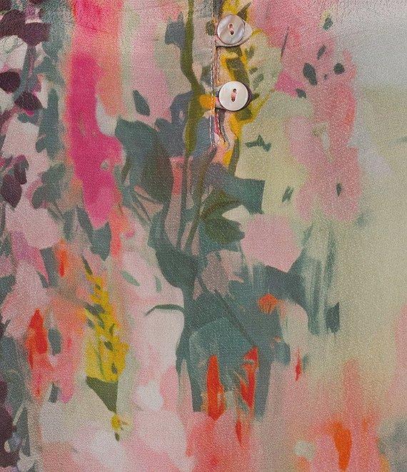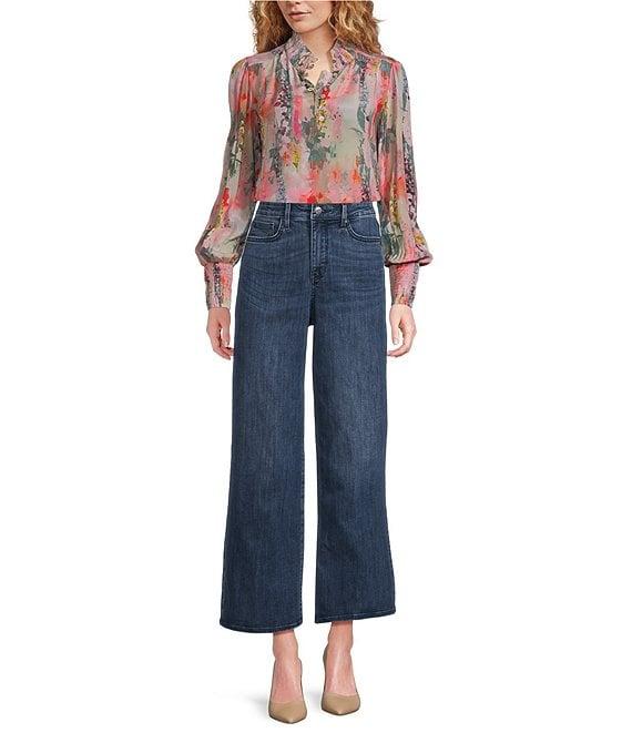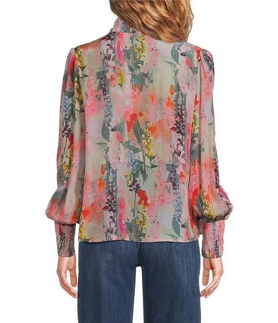 APNY Woven Printed High Neck Puff Sleeve Ruched Blouse