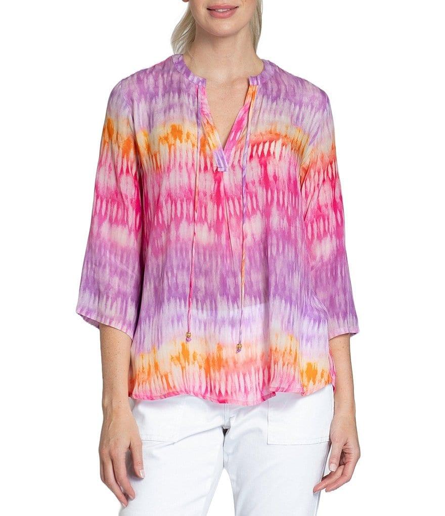 APNY Woven V-Neck 3/4 Sleeve Tassel Top