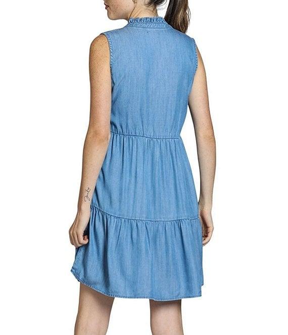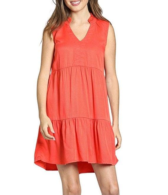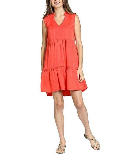APNY Woven V-Neck Sleeveless Ruffle Tiered A-Line Dress