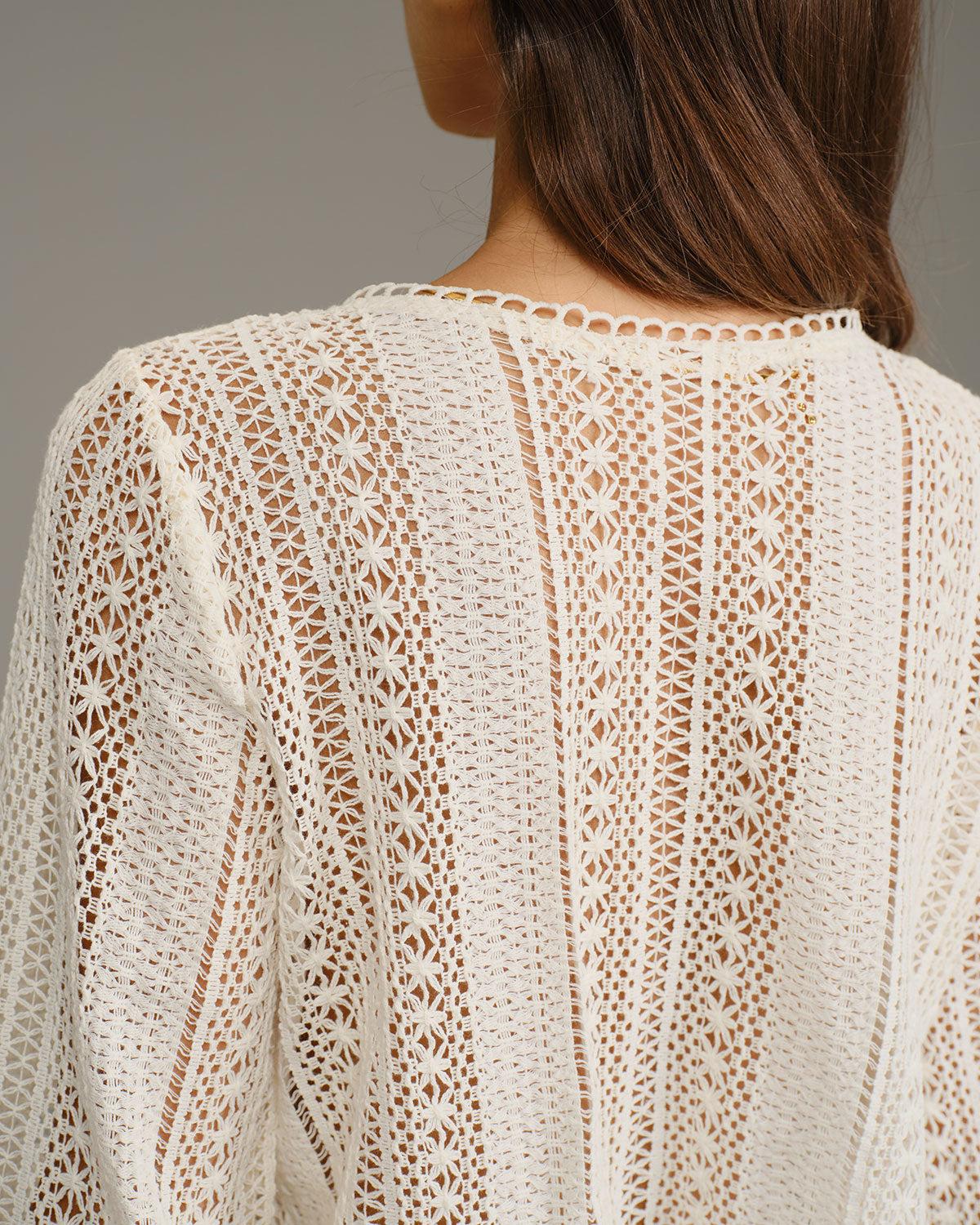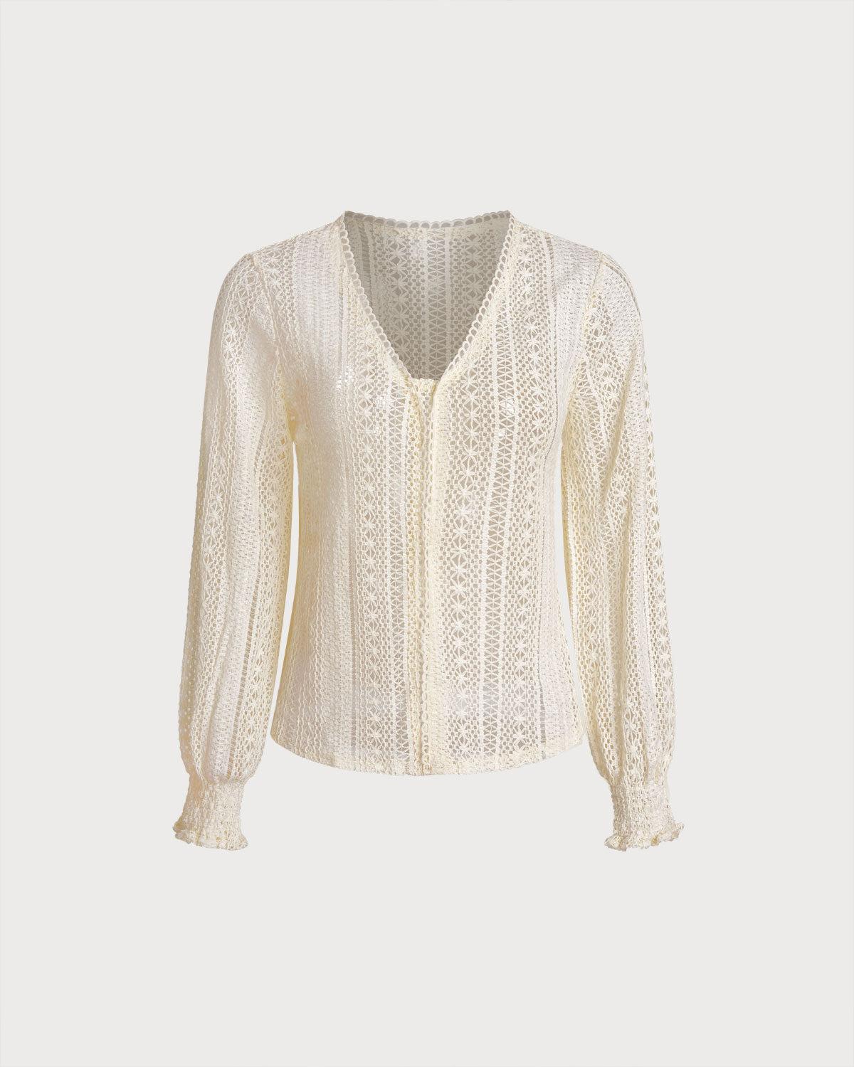 - Occasion: Daily - Style: Elegant - Back Neckline: Closed - Fabric Stretch: No Stretch - Sleeve Length: Long Sleeves - Sleeve Type: Shirt Sleeve - Pattern Type: Solid - Embellishment: Cut Out, Shirred, Ruffle - Neckline: V Neck - Fabric: Polyester 95.0%, Spandex 5.0%