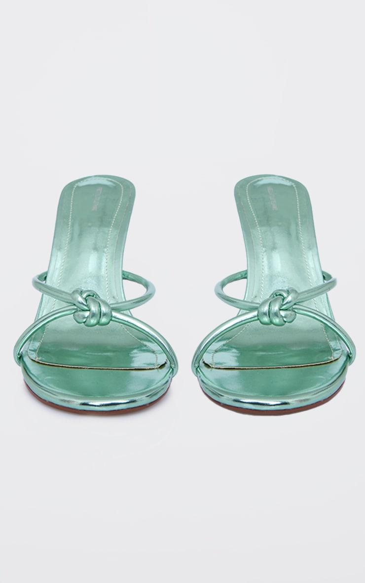 Brighten up your new season wardrobe with these aqua blue PU knotted mid heeled mule sandals. Made from a aqua blue PU material with knotted detailing and mid heels, how can you resist? Style these mule sandals with your weekend outfit to take your look to a whole new level. PU Slip-on 3inch Heel p]:!mb-0inch>Category: FootwearProduct type: Heeled MulesColor: AquaOccasion: Evening