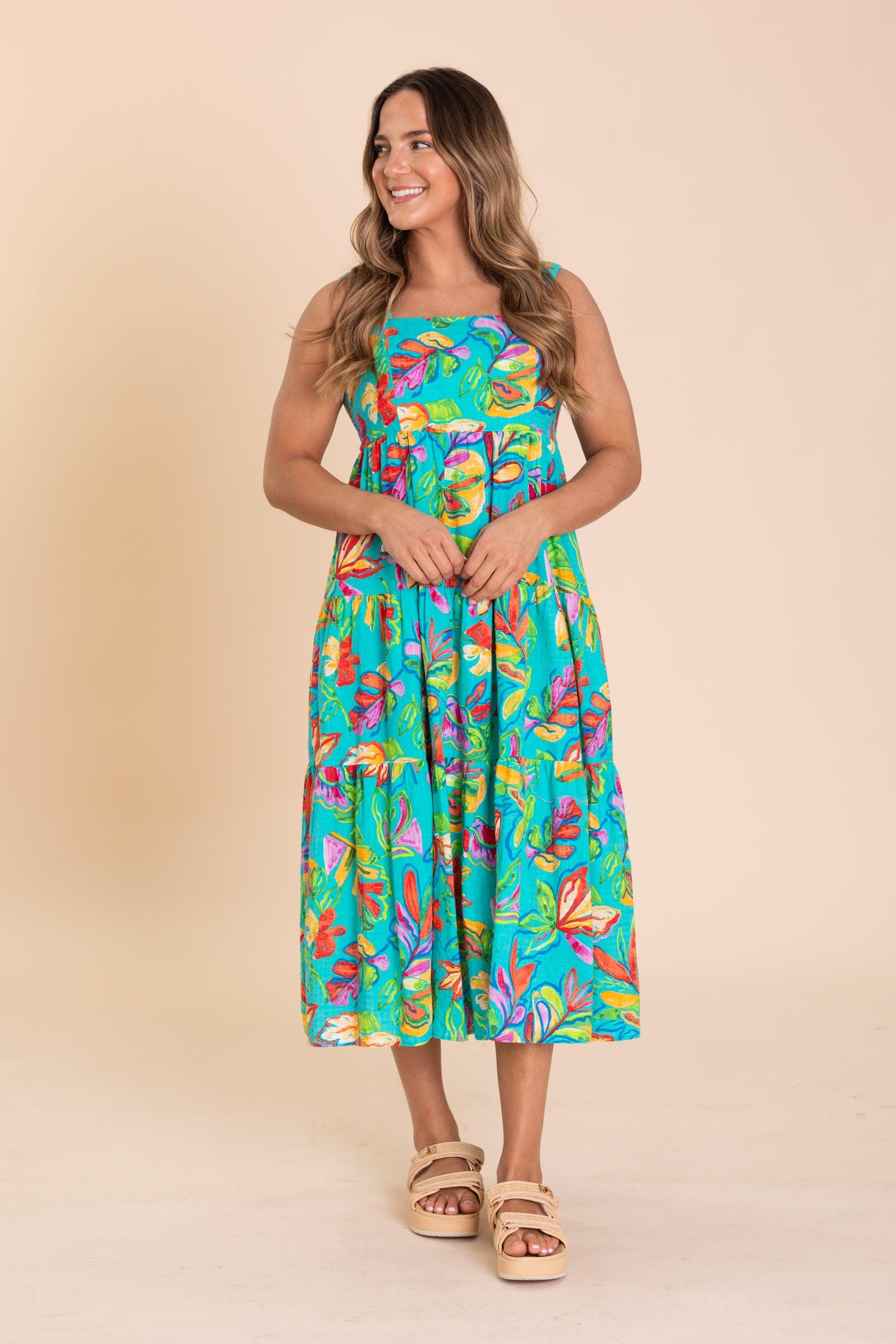 Product Details Colors: Aqua Green, Cornflower, Coral, Red, Green, Lavender, Marigold, Lime, White, Berry Print: Floral Neckline: Square Sleeve: Sleeveless Hemline: Straight Brand: Easel Material and Care 58% Cotton 42% Rayon Hand Wash Cold Hang Dry Size and Fit Small: Bust 32" Waist 30" Length 46" Medium: Bust 34" Waist 32" Length 47" Large: Bust 36" Waist 34" Length 48" Model is 5'8 and wearing a size small Model is 5'7 and is wearing her true size small