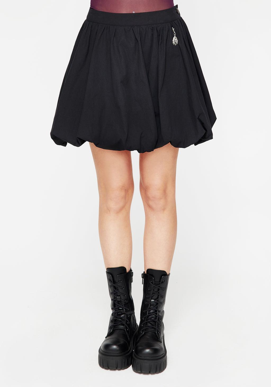 What’s normal for the spider is chaos for the fly- Black puffball mini micro skirt with spider charm - Mid-rise fit with a bubble hem in a micro-mini length - Fitted waistband fastens with a side zipper & jigger button - Balloon hem for a voluminous finish - Soft breathable cotton fabrication (non-stretch for structure) - Silver spider & web charm attaches to waistband with a lobster clasp - Sink your teeth in 100% cotton