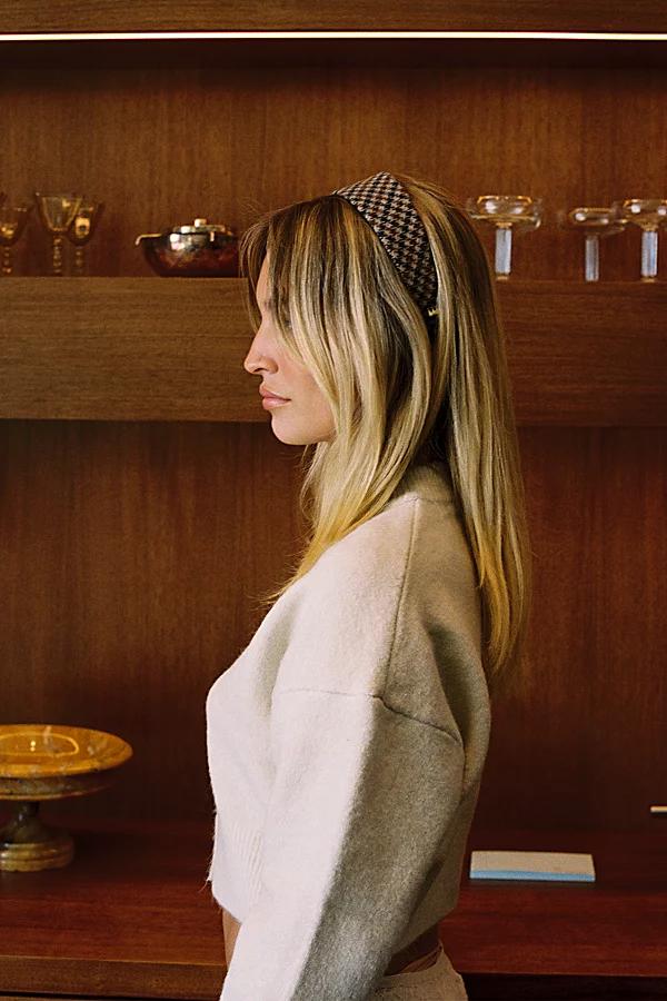 A 60s mod inspired silhouette. Adorned with our signature crown charm Content + Care Houndstooth and Soft Blue: Brushed Wool/Poly Blend Pinstripe: 100% Cotton Spot Clean Imported Size + Fit 4.5 cm width Arc and Bow Mod Headband in Pinstripe, Womens at Urban Outfitters