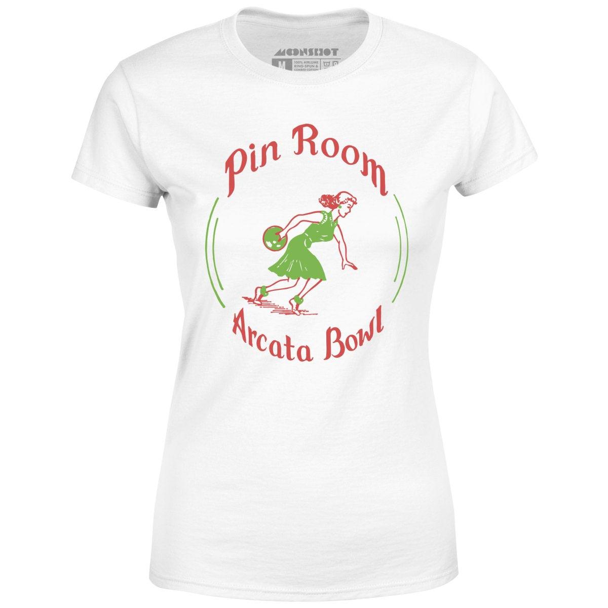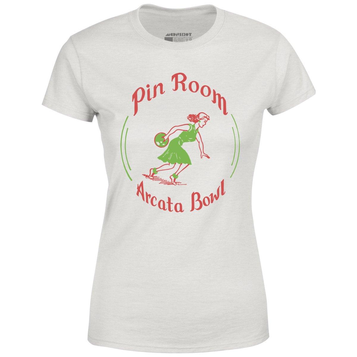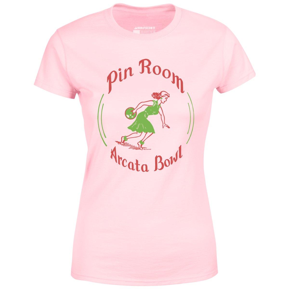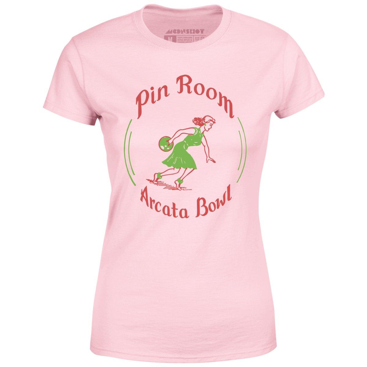The Pin Room was a cocktail bar located inside Arcata Bowl, an old school bowling alley that was located in Arcata, California and closed in 2001. This design is part of our retro bowling alley collection featuring the vintage defunct bowling alleys of yesteryear. Memorialized on high quality apparel. Printed on our super soft 100% ringspun & combed cotton women's T-Shirt. Or upgrade to our Luxury 52/48 cotton/poly vintage heather edition for an even softer classic look. We print & ship all of our high quality graphic tees in the USA.