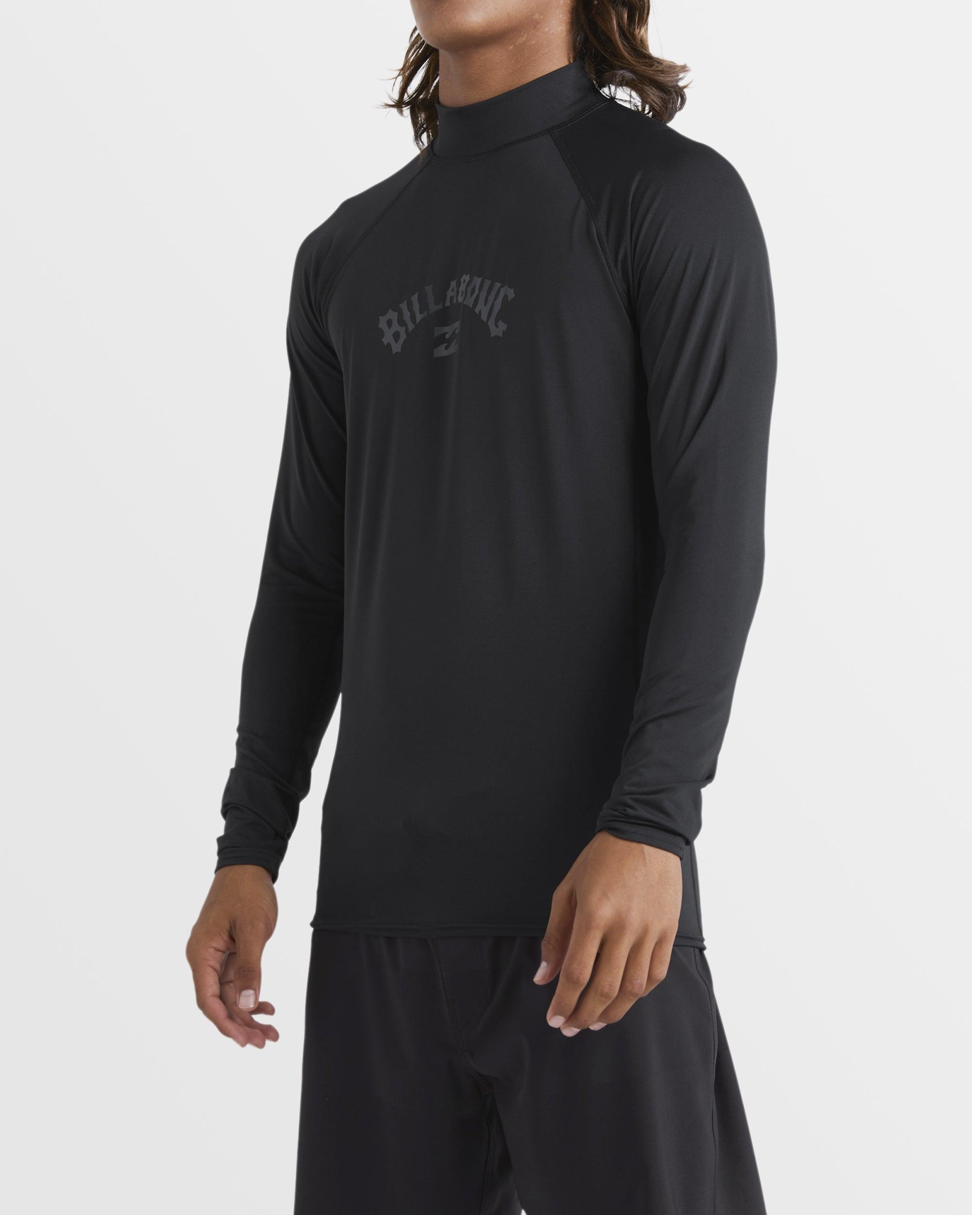 Our Billabong rashguard delivers comfort and protection in and out of the water. Hybrid jersey fabric in a performance fit moves with you, and the mock neck and long sleeves block 50+ UV rays. Your new go-to for active days. Featured here in the Black colorway. Features Hybrid Jersey Fabric Performance Fit Long Sleeve Rash Guard Mock Neck 50+ UV Protection