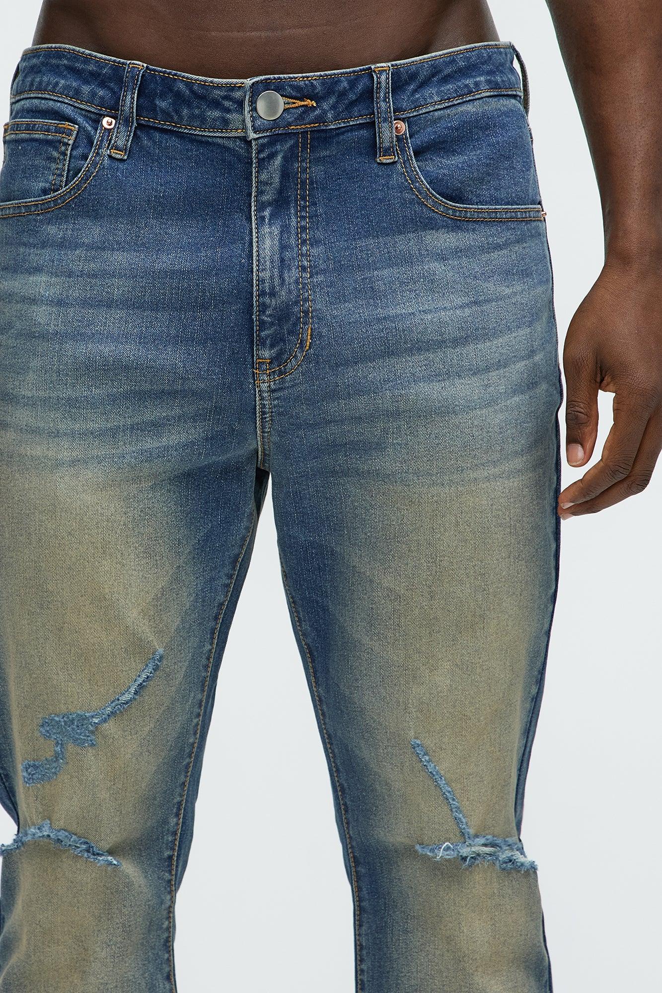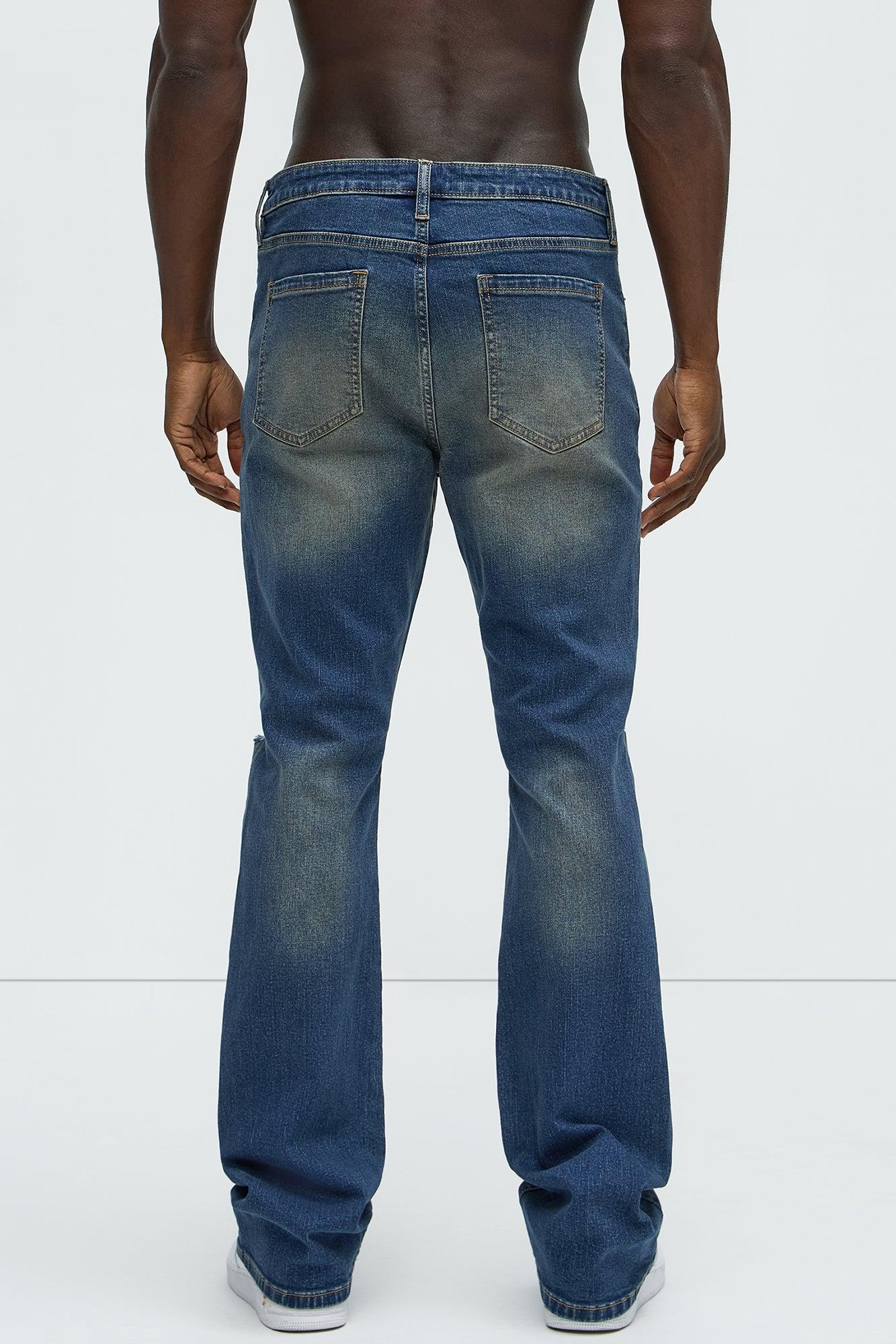 Available In Dark Wash. Stacked Skinny Flared Fit Zip Fly Button Closure 5 Pocket Detail Ripped Detail 98% Cotton, 2% Spandex Disclaimer: Due To The Specialized Distressing & Wash Process, Each Garment Is Unique. Imported California Proposition 65 WARNING: Cancer and Reproductive Harm - www.P65Warnings.ca.gov.