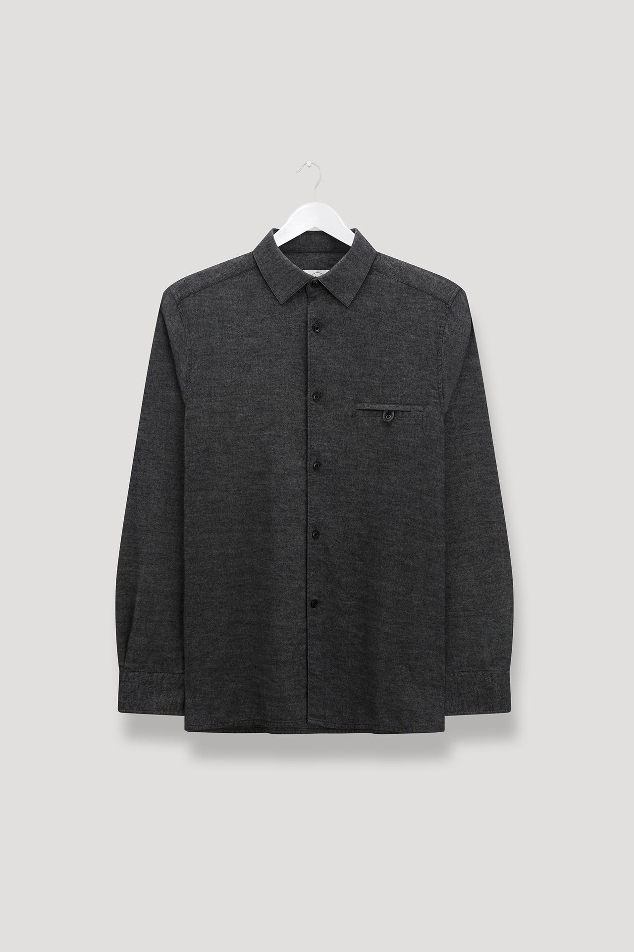Expertly crafted in a luxurious, brushed cotton. The Essential Shirt is cut with a straight hem and vent in the side seam for a cleaner look. Lightweight yet warm, soft and cosy. Modern, pared back design with a minimal, french-front placket, jet chest pocket, unfussy and lightly fused collar, and finished with sustai
