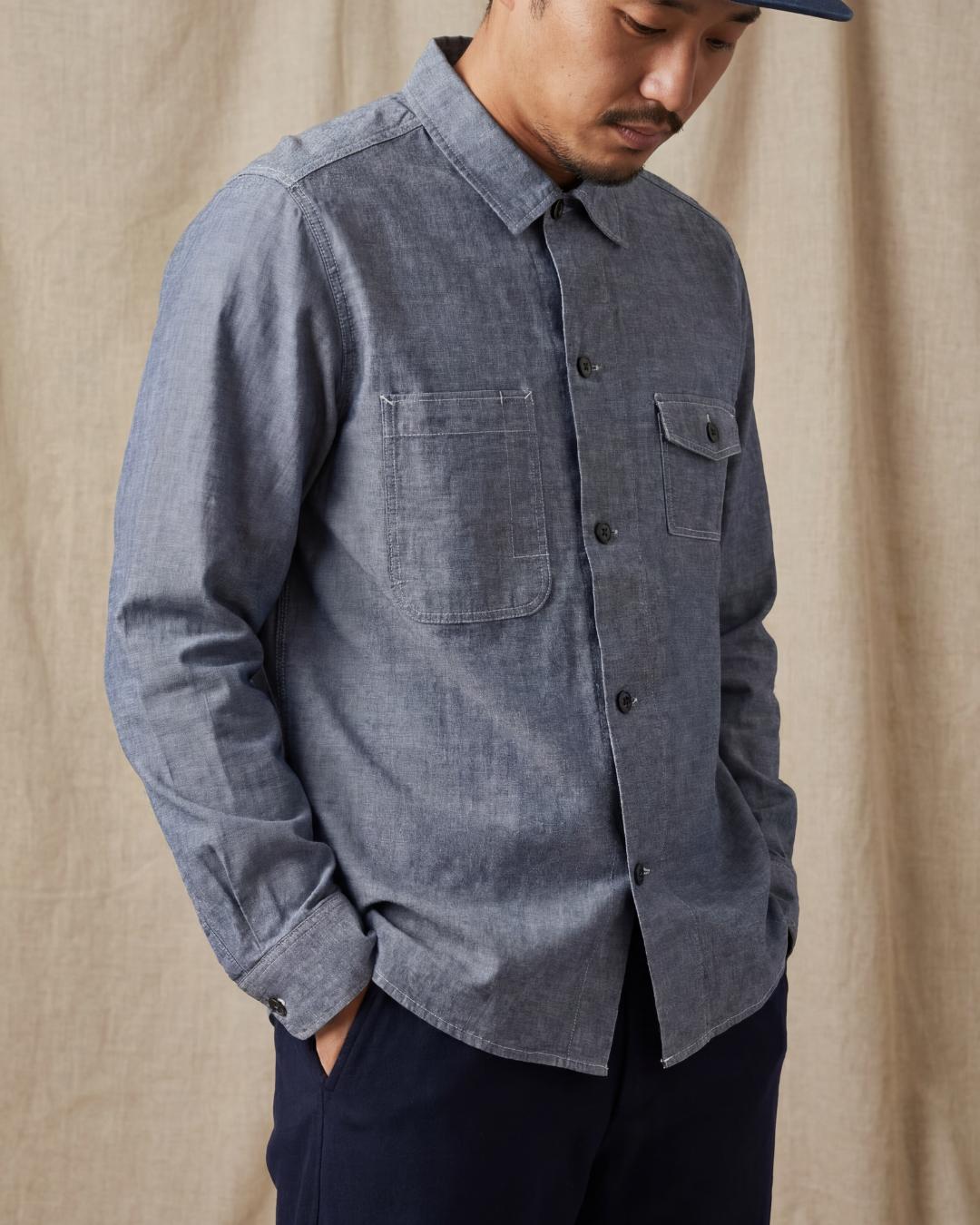 The Draughtsman Overshirt is based on our original Studio Overshirt and detailed with two chest pockets, including handy pen pocket, off-centre buttons and revere collar. Crafted from our signature, lightweight Portuguese cotton chambray. Perfect as a top or middle layer. Finished with premium, sustainable corozo nut b