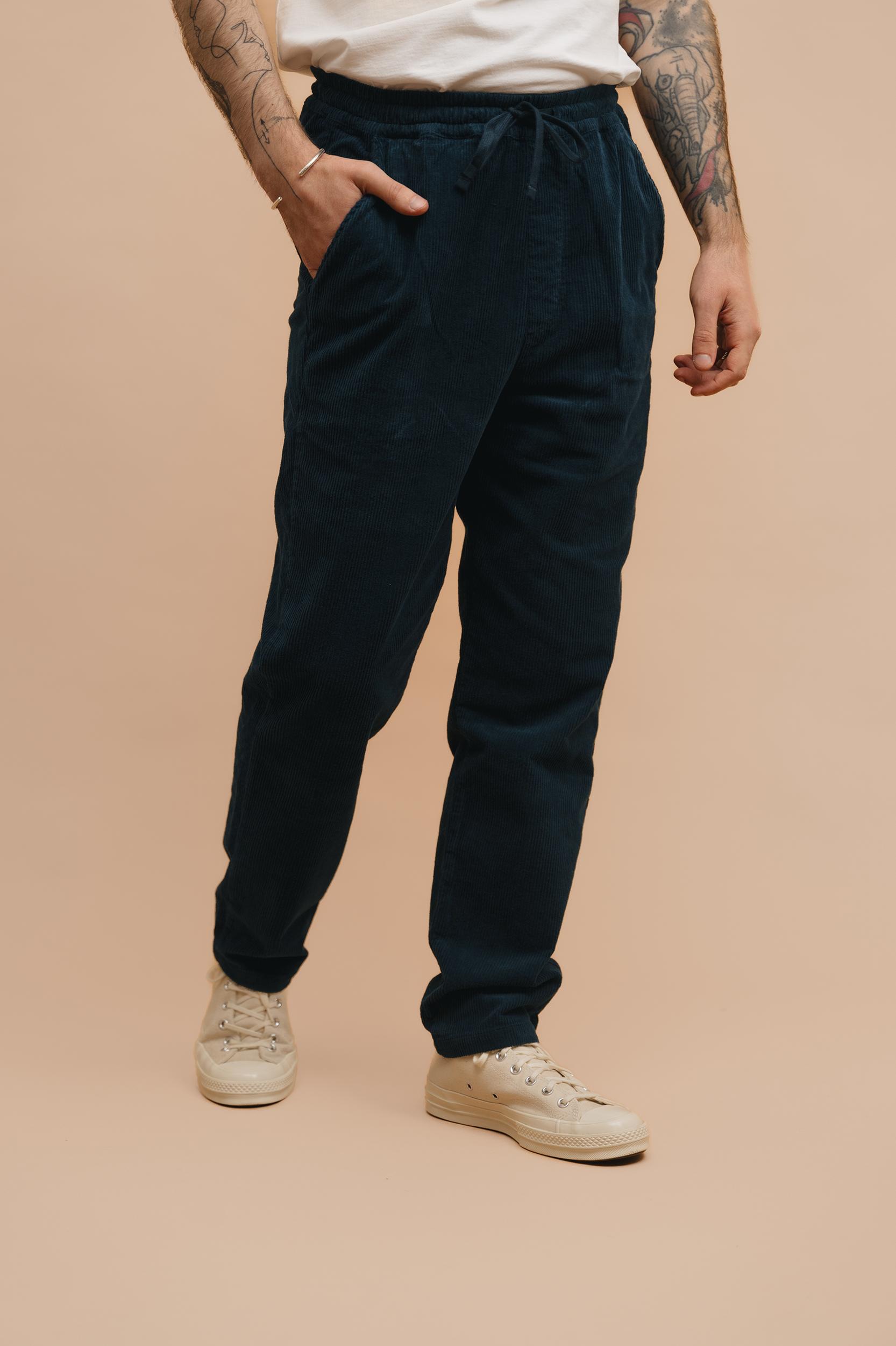 Cut for a slightly relaxed shape that tapers down gently into the hem (same shape as the Ripstop Drawstring Trouser). Developed in weighty cotton corduroy. Perfect year-round trouser which is detailed with an elasticated drawstring waist and two back patch pocket pockets. A tiny amount of stretch in the fabric (2%) pro