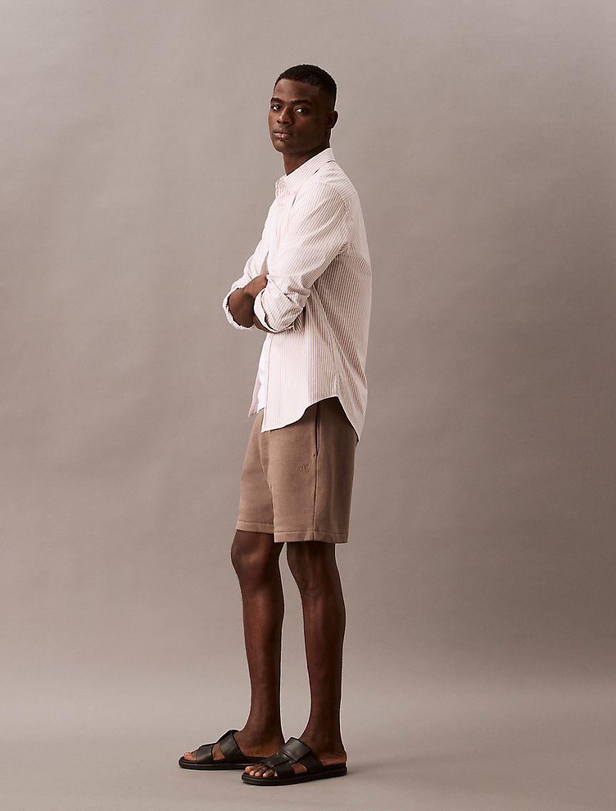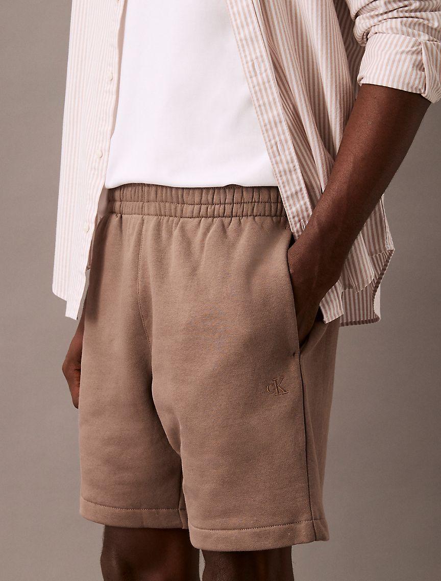 Reimagined classics, iconic Calvin. Designed with an archive-inspired logo, these updated Calvin Klein shorts feature a soft cotton knit fleece blend for premium, all-day comfort. Finished with a drawstring waistband and pull-on styling, angled front slip pockets and straight legs.