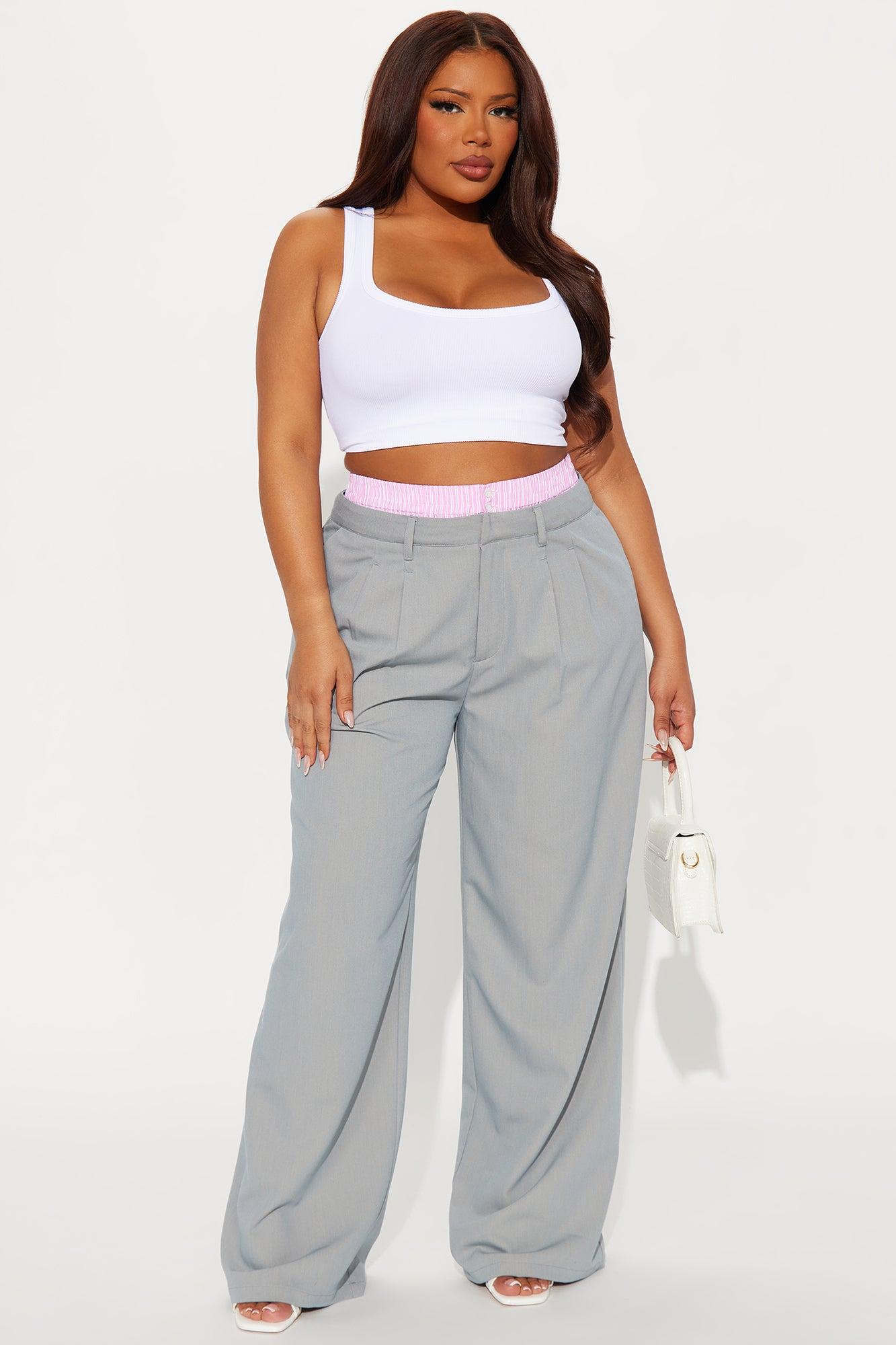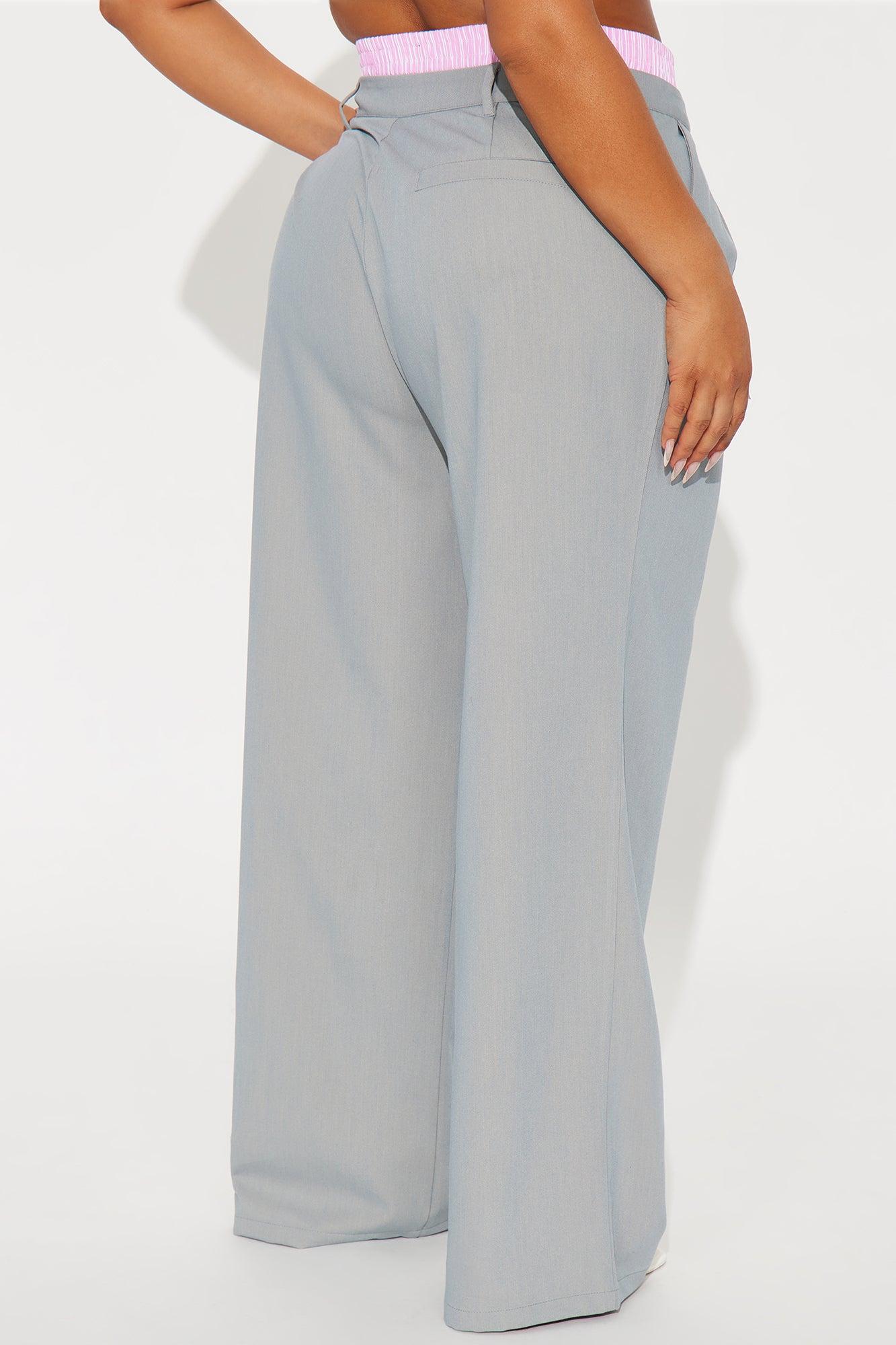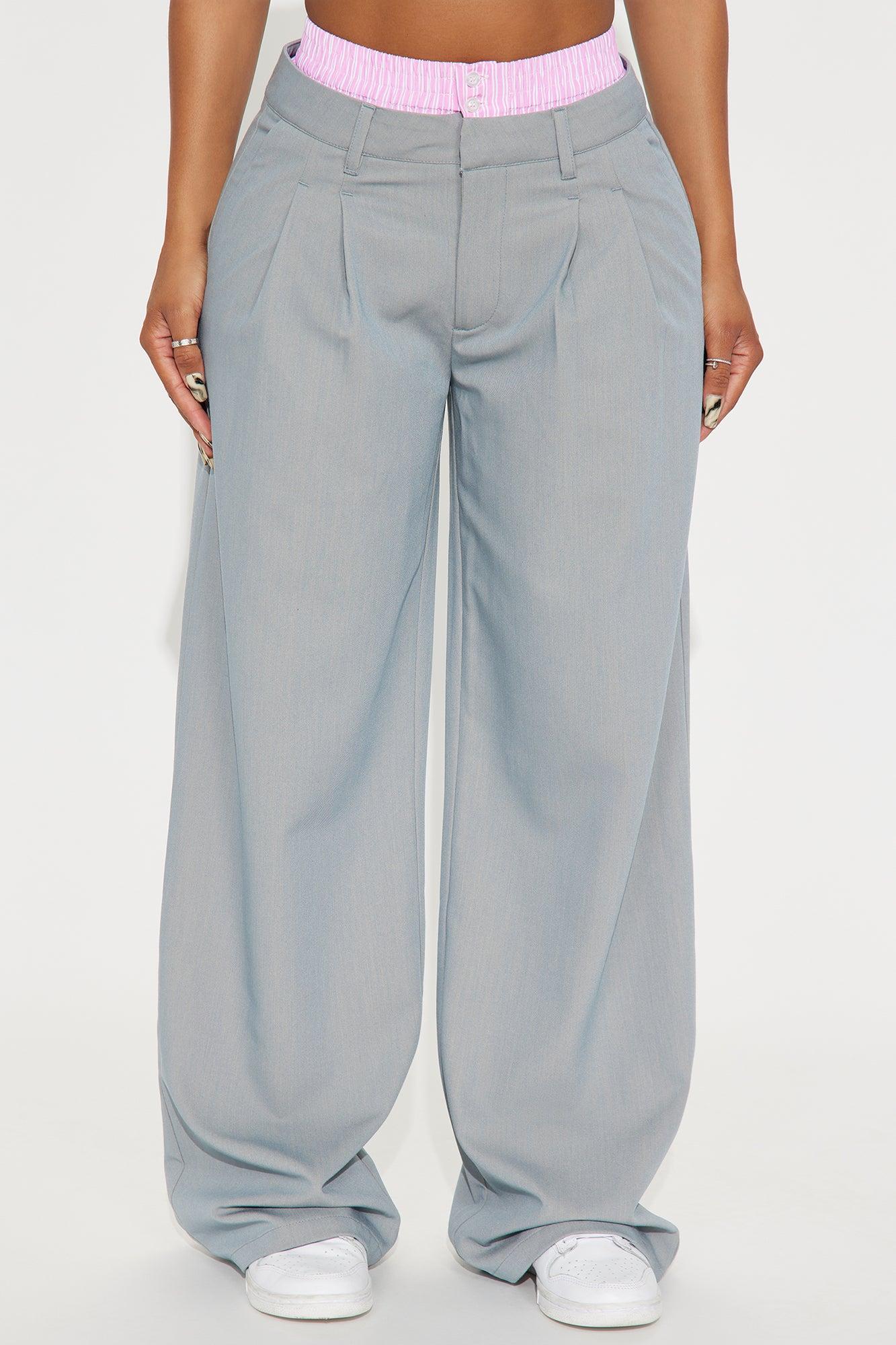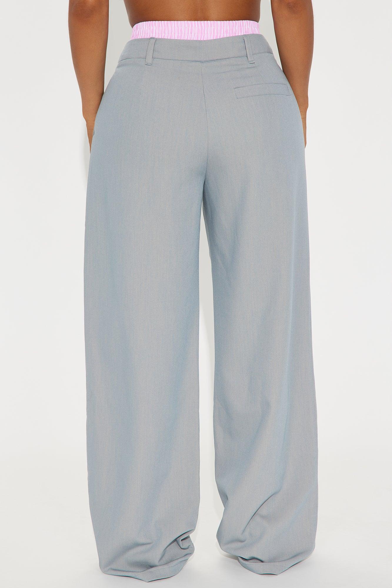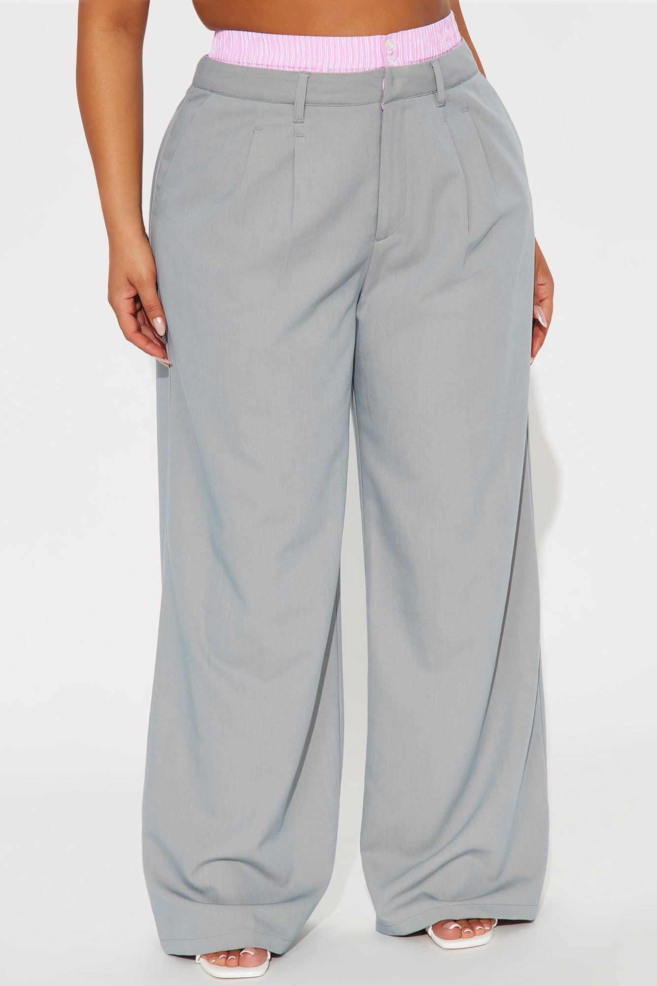 Available In Heather Grey. Trouser Pant High Rise Hook & Eye Closure With Zip Fly Contrast Boxer Double Waistband Hand & Back Pockets Pleated Front Non Stretch 32" Inseam Shell: 71% Polyester 24% Rayon 5% Spandex Contrast: 50% Polyester 50% Cotton Lining: 90% Polyester 10% Cotton Imported California Proposition 65WARNING: Cancer and Reproductive Harm - www.P65Warnings.ca.gov.