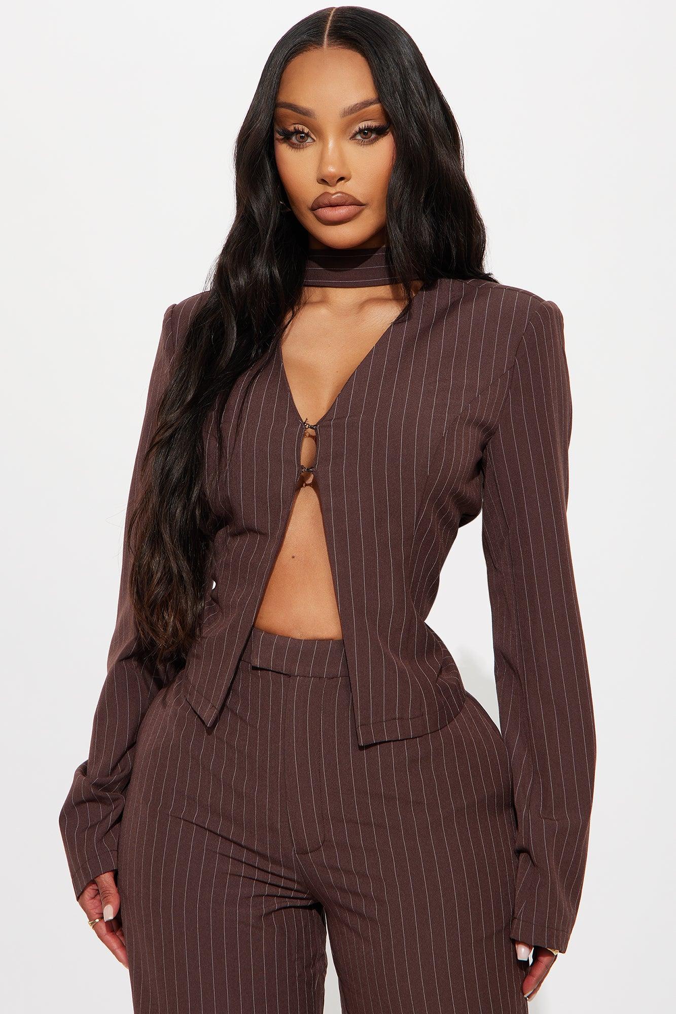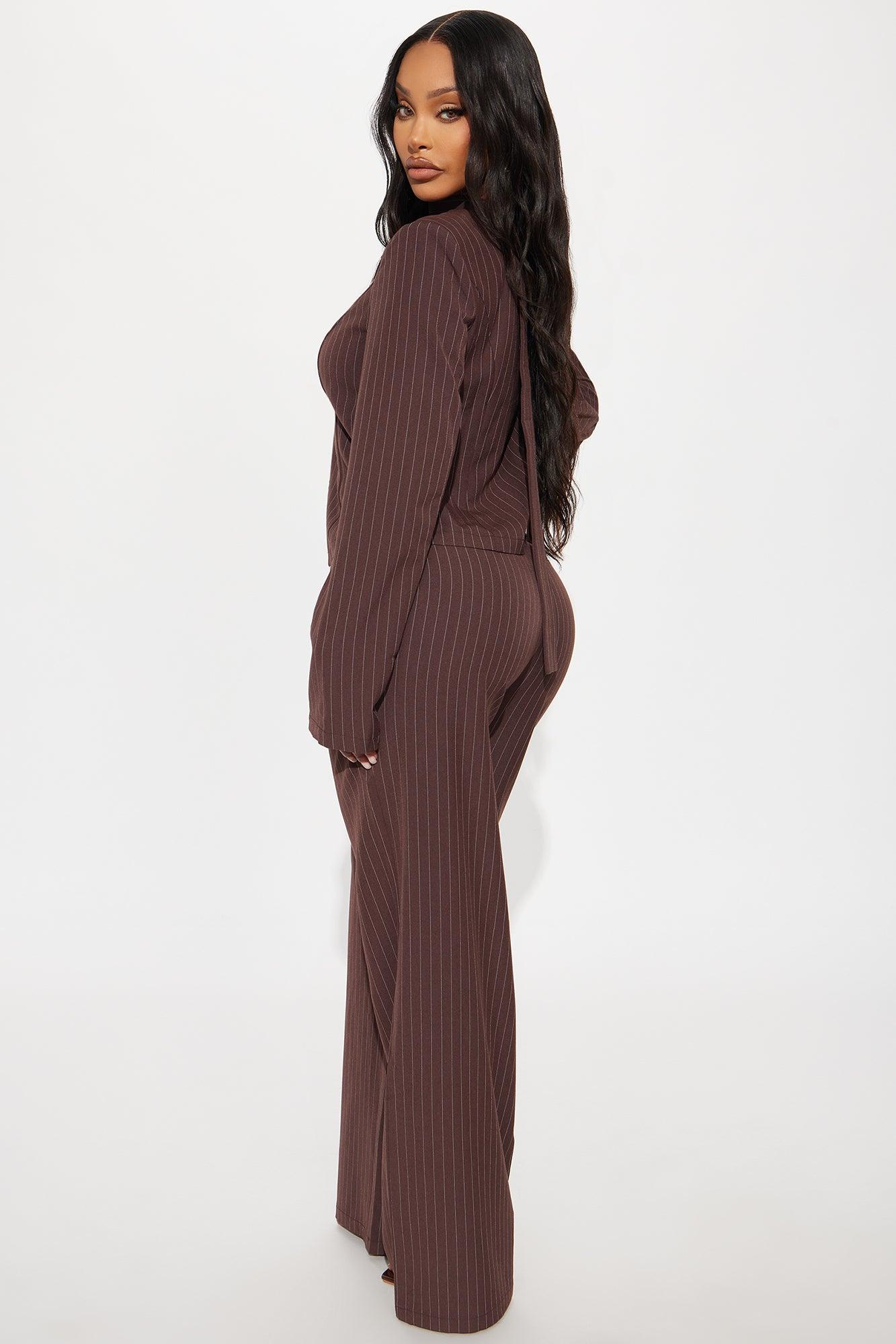 Aretha Blazer Wide Leg Pant Set - Brown Female