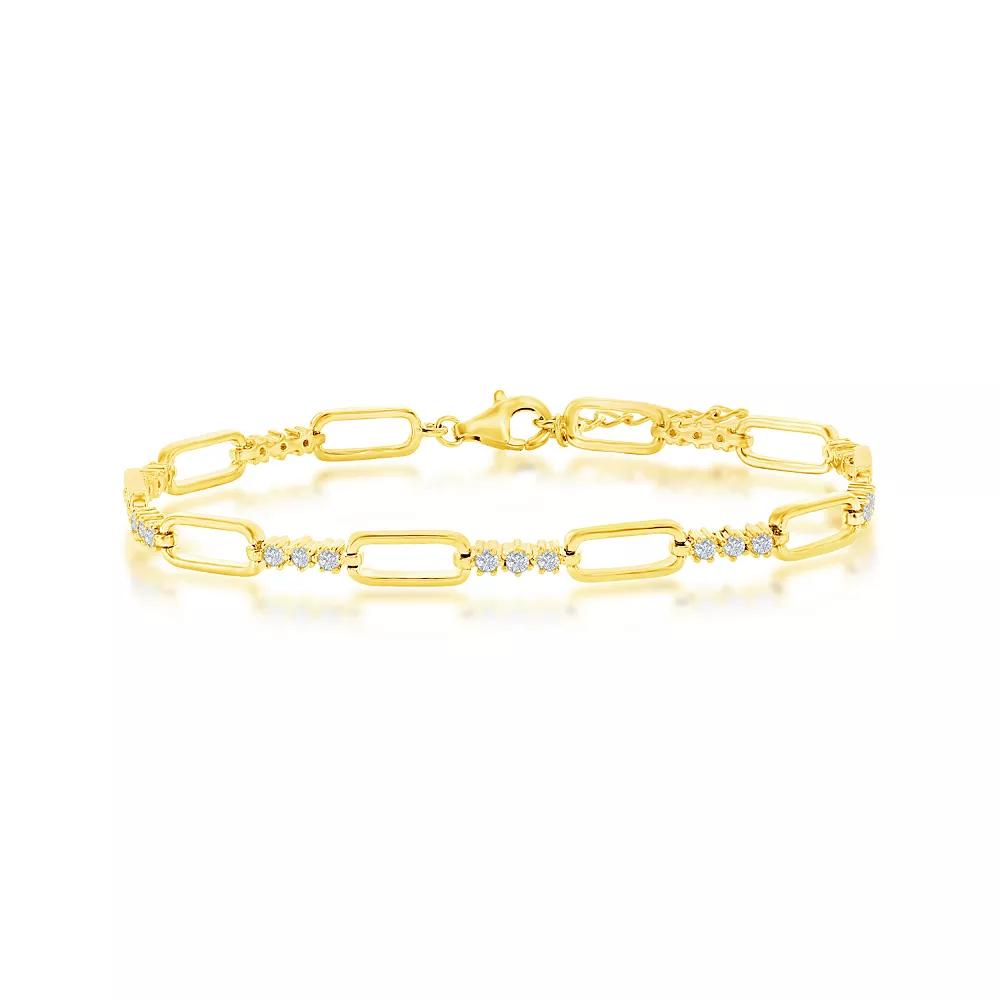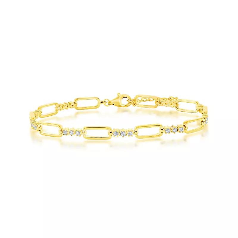 Accessorize in style with this Argento Bella alternating paperclip chain and cubic zirconia bracelet. Click on this JEWELRY & WATCHES GUIDE to learn about fit, styles, materials and more! Accessorize in style with this Argento Bella alternating paperclip chain and cubic zirconia bracelet. Click on this JEWELRY & WATCHES GUIDE to learn about fit, styles, materials and more! FEATURES Length: 7 in. Clasp: lobster-claw Metal: sterling silver Plating: sterling silver Finish: textured Packaging: boxed Nickel freeSTONE DETAILS Stone type: cubic zirconia Center stone: 6 mm x 13 mm Shape: oval Setting: prong Gemstones may have been treated to enhance their appearance. Special care may be required. Please visit our Gemstone Treatment & Special Care Guide for more information. Size: 7-8 ADJ. Color: White. Gender: female. Age Group: adult. Material: Gold Over Sterling.