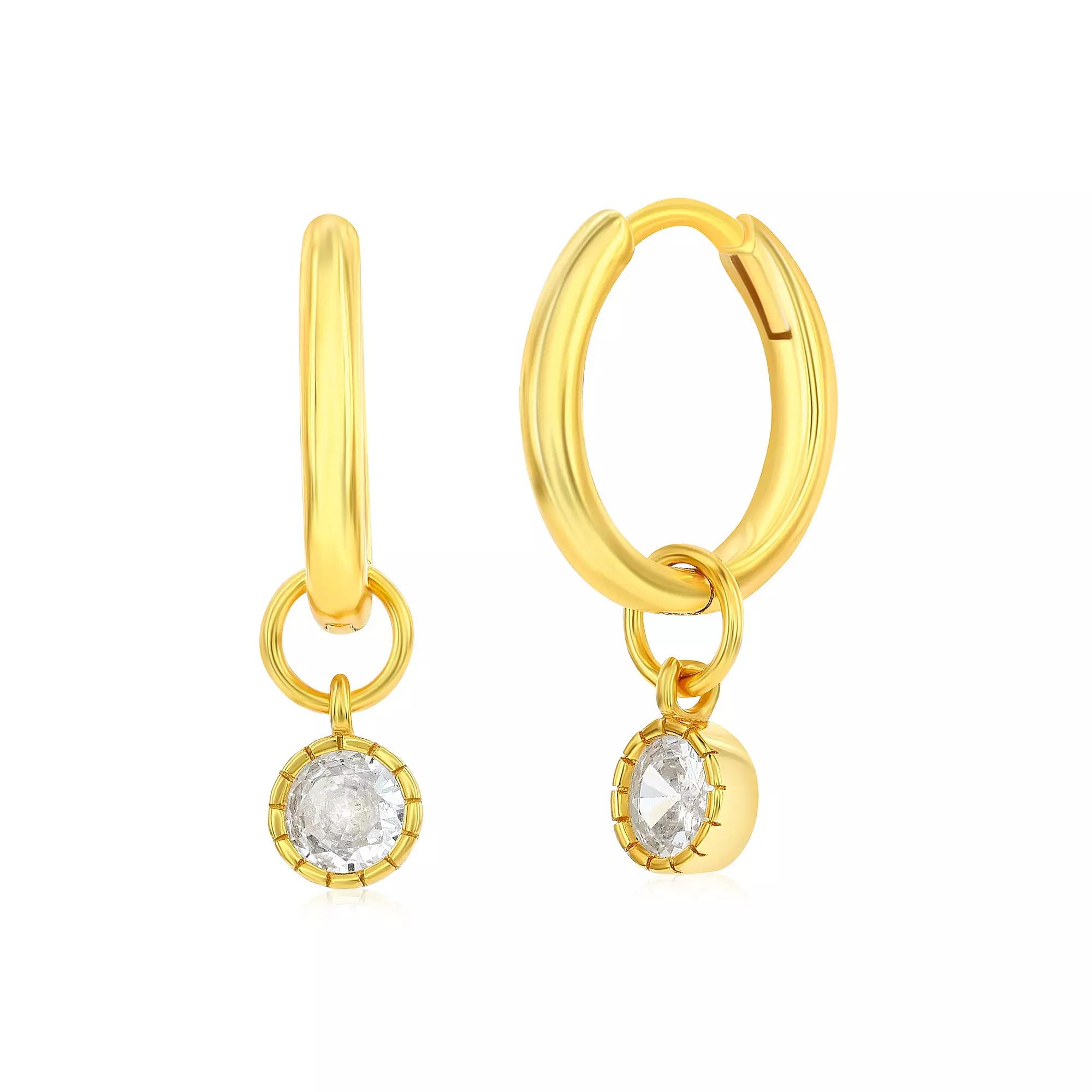 Add a stylish touch of elegance to any ensemble with these gold tone sterling silver Argento Bella cubic zirconia drop hoop earrings. Click on this JEWELRY & WATCHES GUIDE to learn about fit, styles, materials and more! Add a stylish touch of elegance to any ensemble with these gold tone sterling silver Argento Bella cubic zirconia drop hoop earrings. Click on this JEWELRY & WATCHES GUIDE to learn about fit, styles, materials and more! FEATURES Length: 25 mm Backings: click-it Nickel free Metal: sterling silver Plating: gold tone Finish: polished Packaging: boxedSTONE DETAILS Stone type: cubic zirconia Shape: round Setting: bezel Gemstones may have been treated to enhance their appearance. Special care may be required. Please visit our Gemstone Treatment & Special Care Guide for more information. Size: One Size. Color: White. Gender: female. Age Group: adult. Material: Gold Over Sterling.