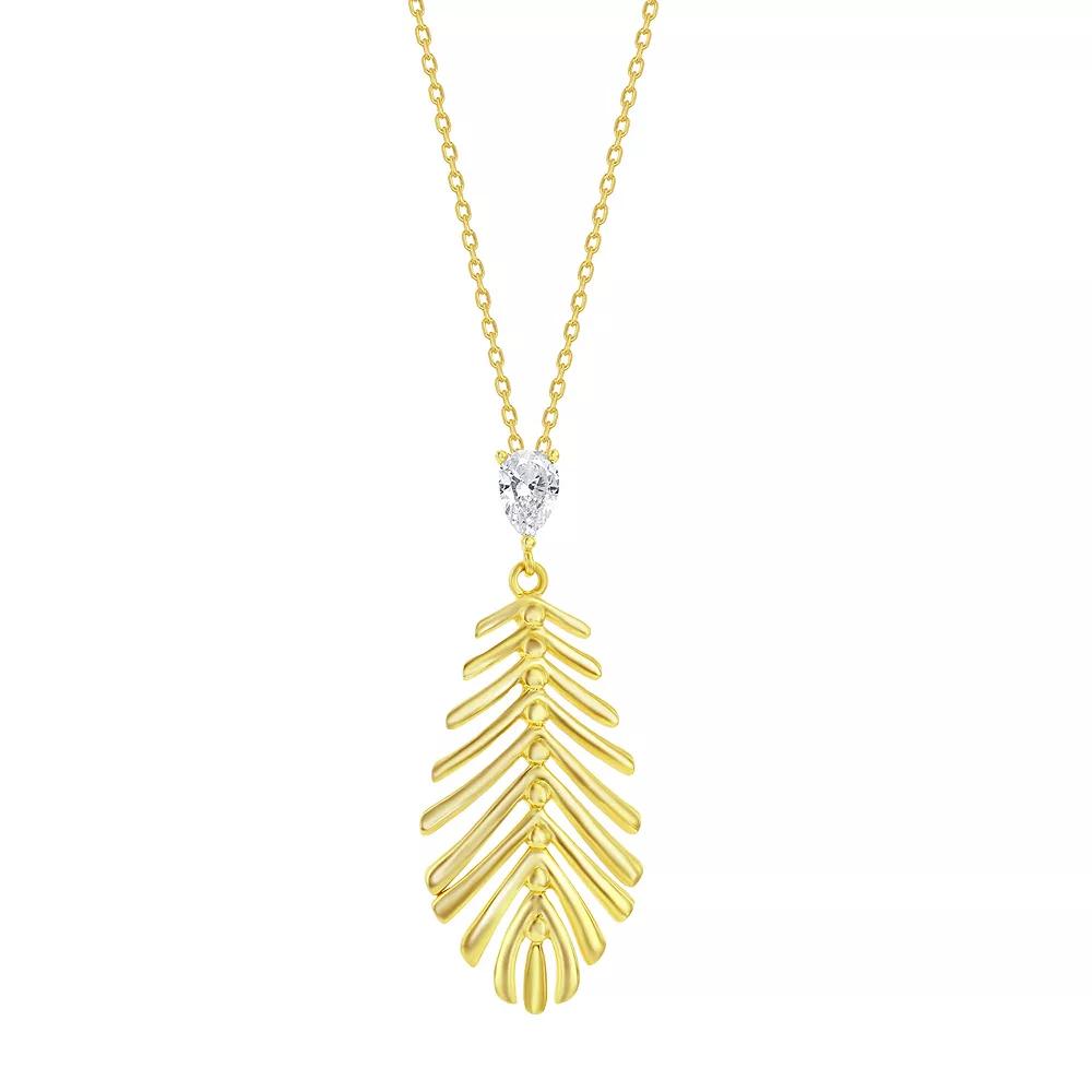Accent your look with the unique style of this sterling silver Argento Bella leaf pendant. Accent your look with the unique style of this sterling silver Argento Bella leaf pendant. Length: 1.5 in. Chain length: 18 in. Chain type: cable Nickel free Metal: sterling silver Plating: gold tone Finish: textured Packaging: boxedSTONE DETAILS Stone type: cubic zirconia Total weight: 2 ct. Center stone size: 7 mm x 4 mm Shape: pear Setting: prong Gemstones may have been treated to enhance their appearance. Special care may be required. Please visit our Gemstone Treatment & Special Care Guide for more information. Size: 18". Color: Yellow. Gender: female. Age Group: adult.