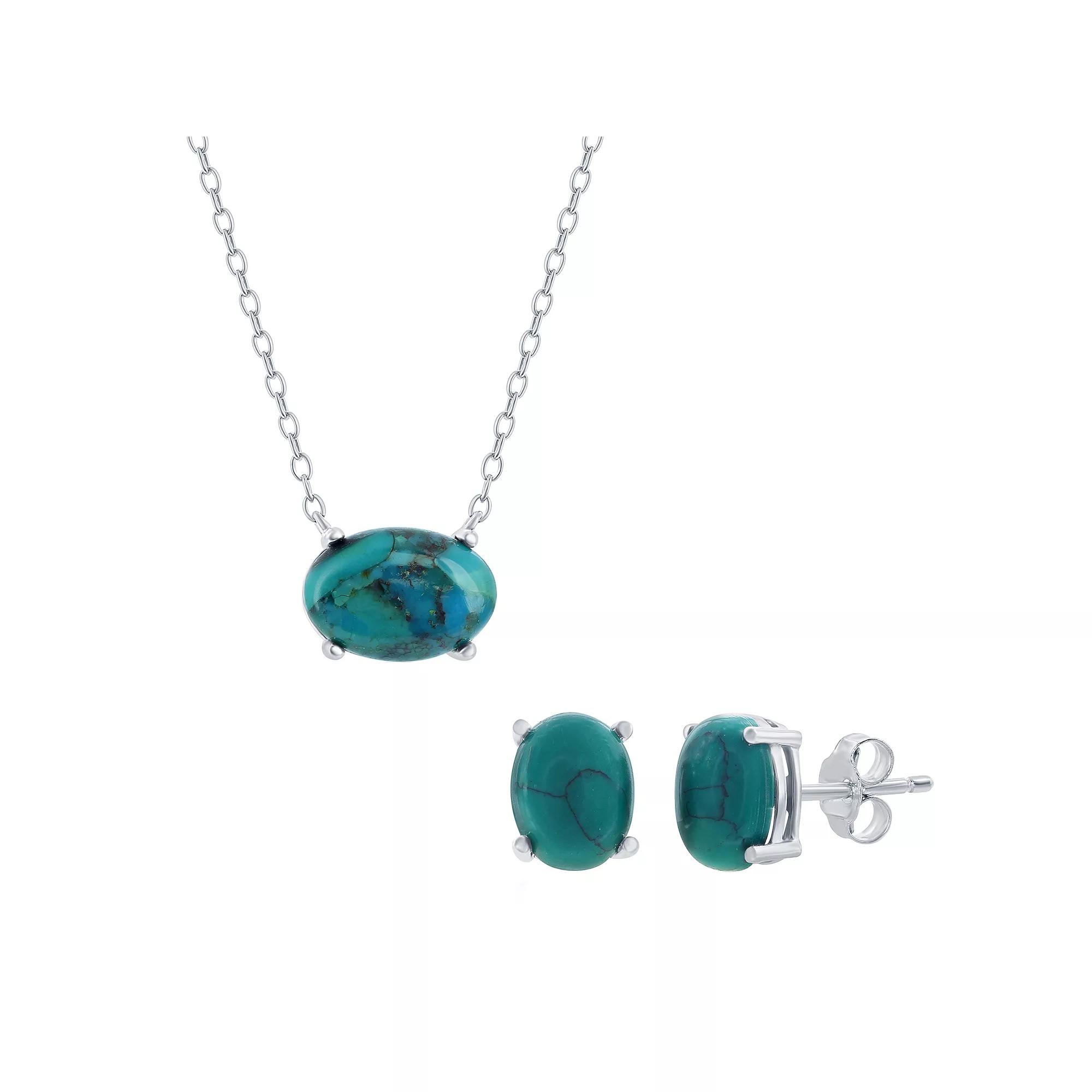 Update your accessories with this Argento Bella oval turquoise earrings and necklace set. Click on this JEWELRY & WATCHES GUIDE to learn about fit, styles, materials and more! Update your accessories with this Argento Bella oval turquoise earrings and necklace set. Click on this JEWELRY & WATCHES GUIDE to learn about fit, styles, materials and more! FEATURES Chain length: 16 in. + 2-in. extender Chain type: cable Clasp: lobster-claw Earring diameter: 8 mm x 6 mm Backings: post Metal: sterling silver Plating: sterling silver Finish: polished Packaging: boxed Nickel freeSTONE DETAILS Stone type: turquoise Center stone size: 8 mm x 6 mm Shape: oval Setting: prong Gemstones may have been treated to enhance their appearance. Special care may be required. Please visit our Gemstone Treatment & Special Care Guide for more information. Size: 16-18 ADJ. Color: Green. Gender: female. Age Group: adult.