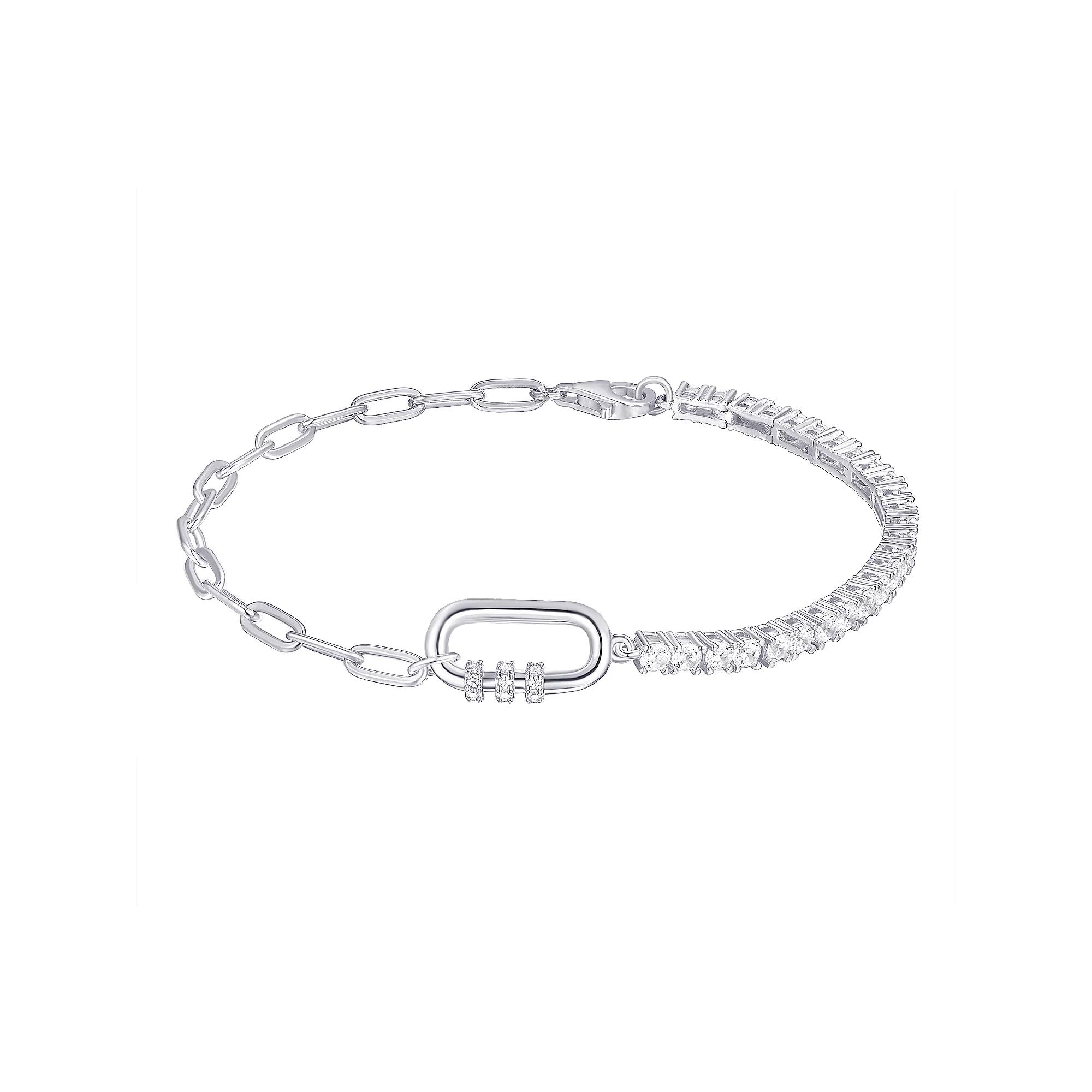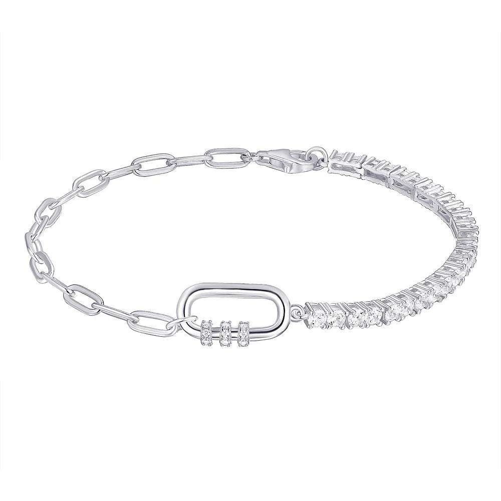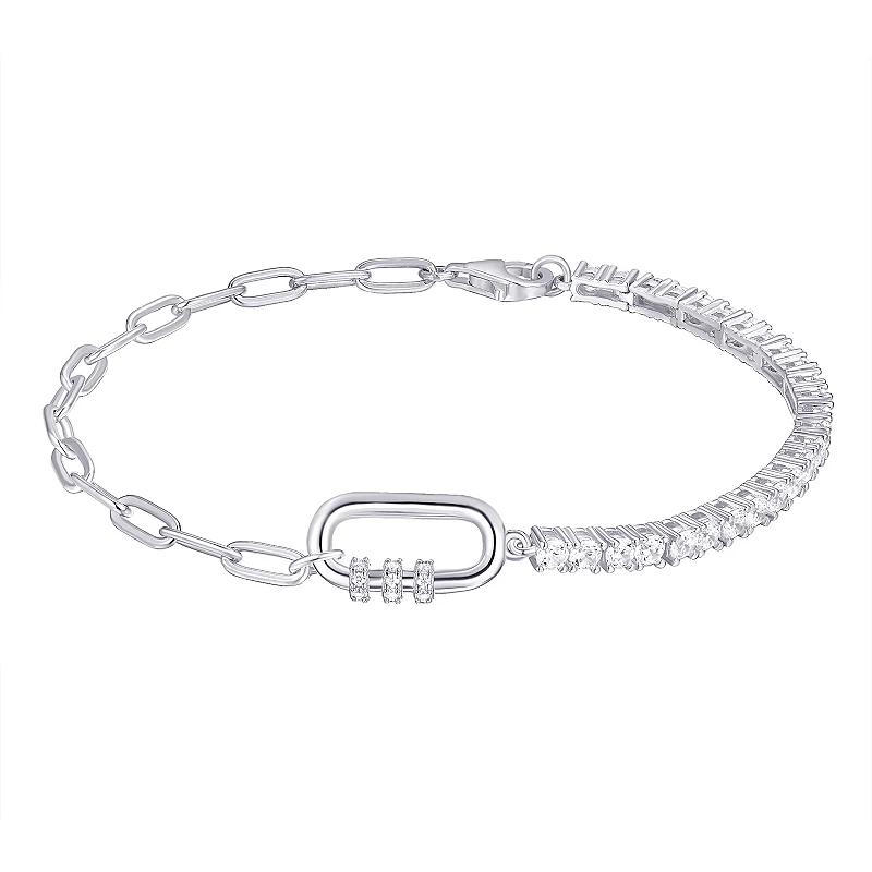 Charmed with cubic zirconia, the unique design of this tennis and link chain bracelet will be your new favorite accessory. Charmed with cubic zirconia, the unique design of this tennis and link chain bracelet will be your new favorite accessory. Length: 8 in. Metal: sterling silver Plating: platinum Finish: polished Packaging: boxed Nickel freeSTONE DETAILS Stone type: cubic zirconia Center stone size: 2.5 mm x 2.5 mm Shape: round Setting: prong Gemstones may have been treated to enhance their appearance. Special care may be required. Please visit our Gemstone Treatment & Special Care Guide for more information. Image(s) may be enlarged to show detail. Size: 8". Color: White. Gender: female. Age Group: adult.