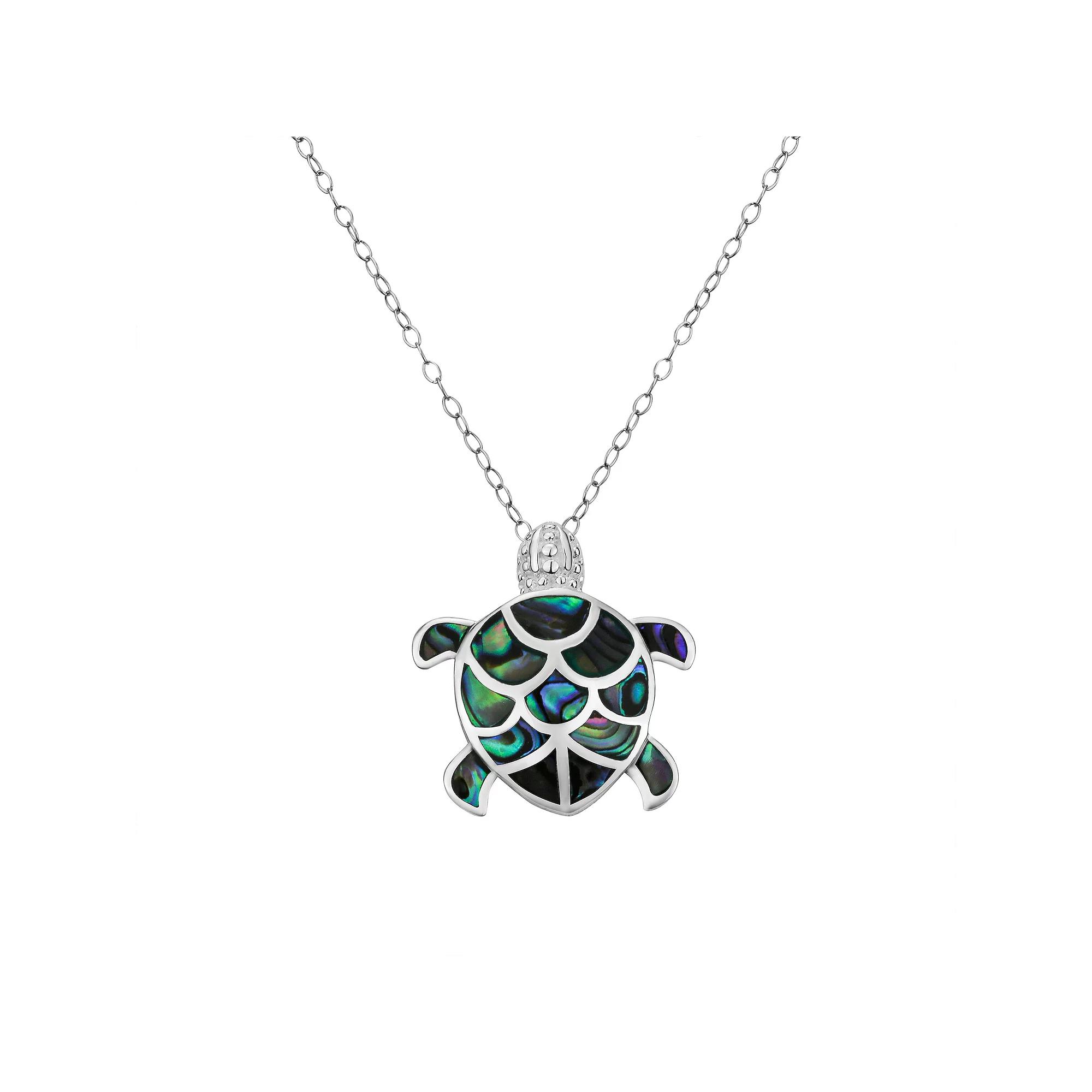 Add elegance to your look with this sterling silver abalone turtle pendant necklace. Click on this JEWELRY & WATCHES GUIDE to learn about fit, styles, materials and more! Add elegance to your look with this sterling silver abalone turtle pendant necklace. Click on this JEWELRY & WATCHES GUIDE to learn about fit, styles, materials and more! FEATURES Pendant size: 0.93 x 0.85 Chain length: 18 in. Chain type: cable Clasp: spring-ring Nickel free Metal: sterling silver Plating: rhodium Finish: polished Packaging: boxedSTONE DETAILS Stone type: abalone Total weight: 2 1/2 ct. Setting: mosaic inlay Gemstones may have been treated to enhance their appearance. Special care may be required. Please visit our Gemstone Treatment & Special Care Guide for more information. Size: 18. Color: Purple. Gender: female. Age Group: adult.