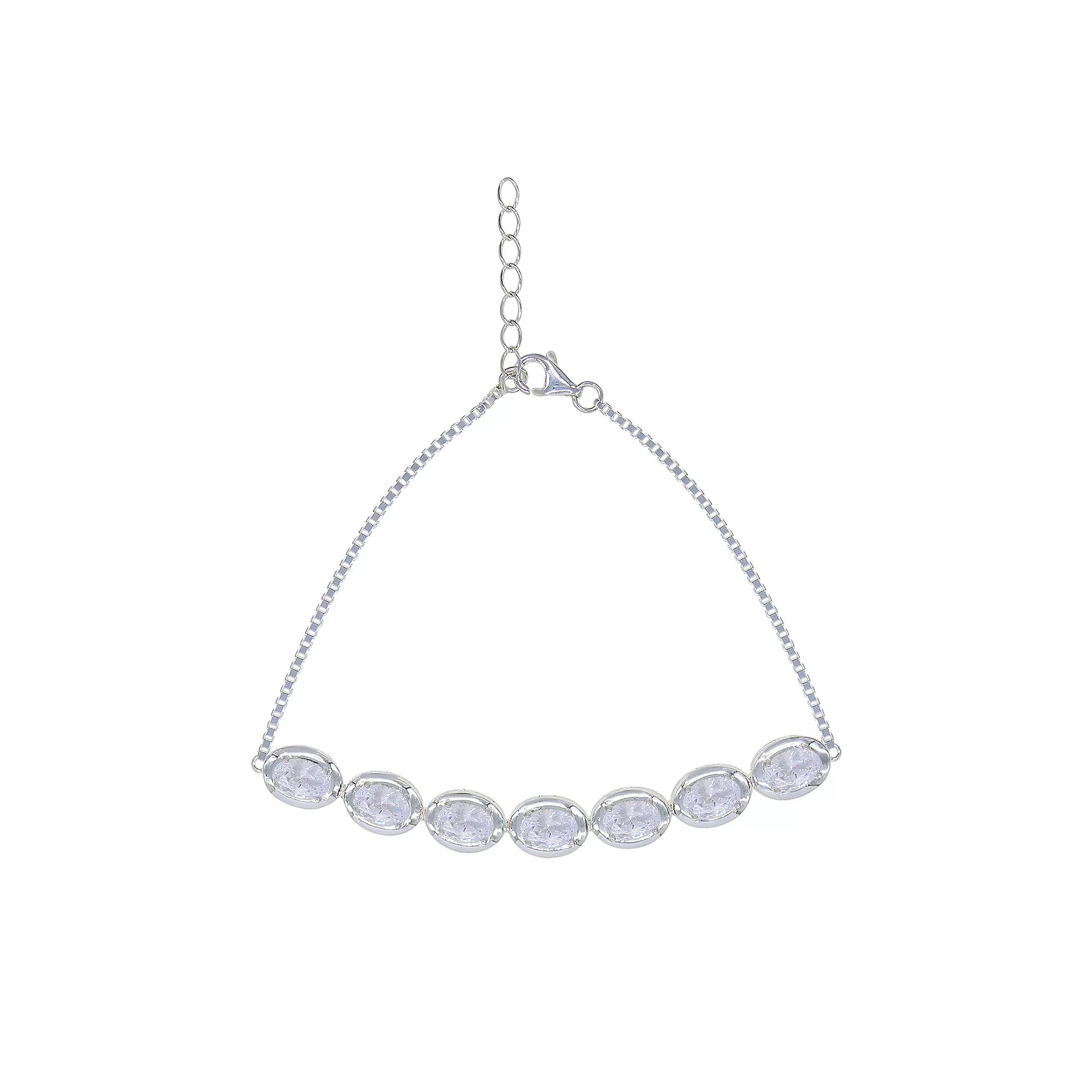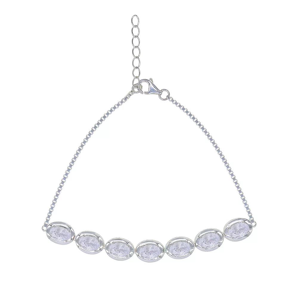 Add something new to your wardrobe with this stylish cubic zirconia bracelet. Add something new to your wardrobe with this stylish cubic zirconia bracelet. FEATURES Length: 7.5 in. with 1-in. extender Clasp: lobster-claw Nickel free Metal: sterling silver Plating: platinum Finish: polished Packaging: boxedSTONE DETAILS Stone type: cubic zirconia Shape: oval Setting: prong Gemstones may have been treated to enhance their appearance. Special care may be required. Please visit our Gemstone Treatment & Special Care Guide for more information. Please note, due to the high value of this item, a signature may be required upon delivery. Size: 7. Color: White. Gender: female. Age Group: adult.