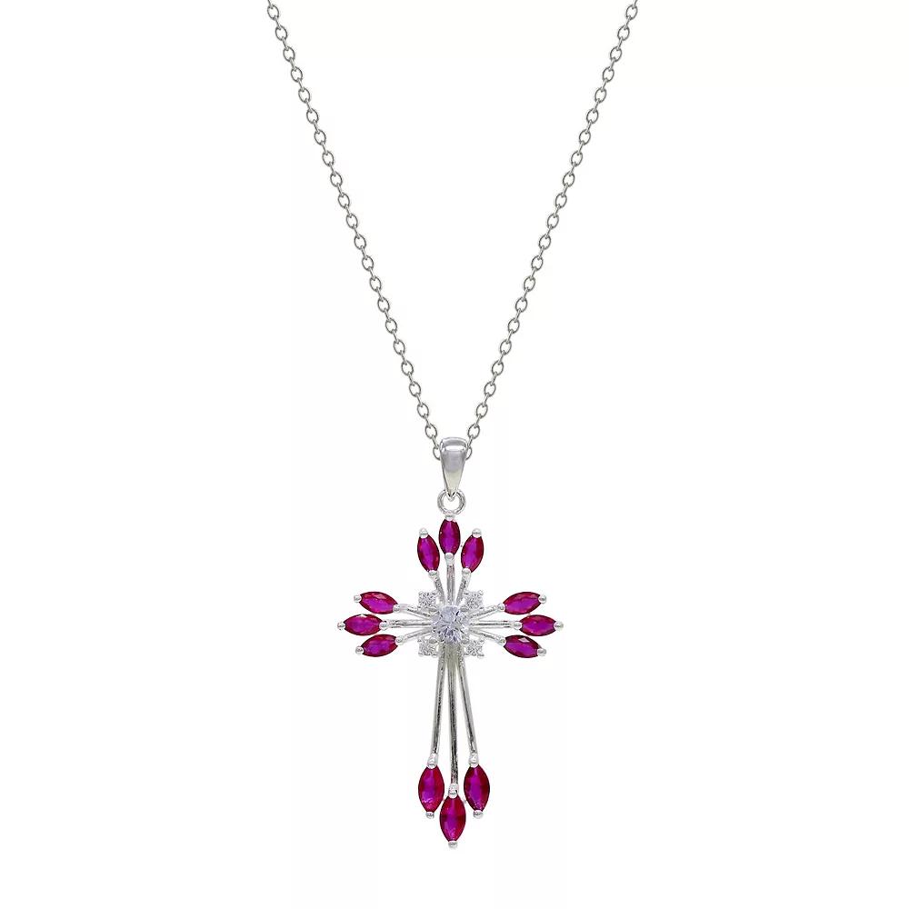 Youll simply love the radiant look of this white and red cubic zirconia cross pendant necklace. Youll simply love the radiant look of this white and red cubic zirconia cross pendant necklace. FEATURES Pendant size: 1.53L x 0.82W Chain length: 18 in. Chain type: cable Clasp: lobster-claw Nickel free Metal: sterling silver Plating: platinum Finish: polished Packaging: boxedSTONE DETAILS Stone type: cubic zirconia Shape: marquise, round Setting: prong Gemstones may have been treated to enhance their appearance. Special care may be required. Please visit our Gemstone Treatment & Special Care Guide for more information. Please note, due to the high value of this item, a signature may be required upon delivery. Size: 18. Gender: female. Age Group: adult.
