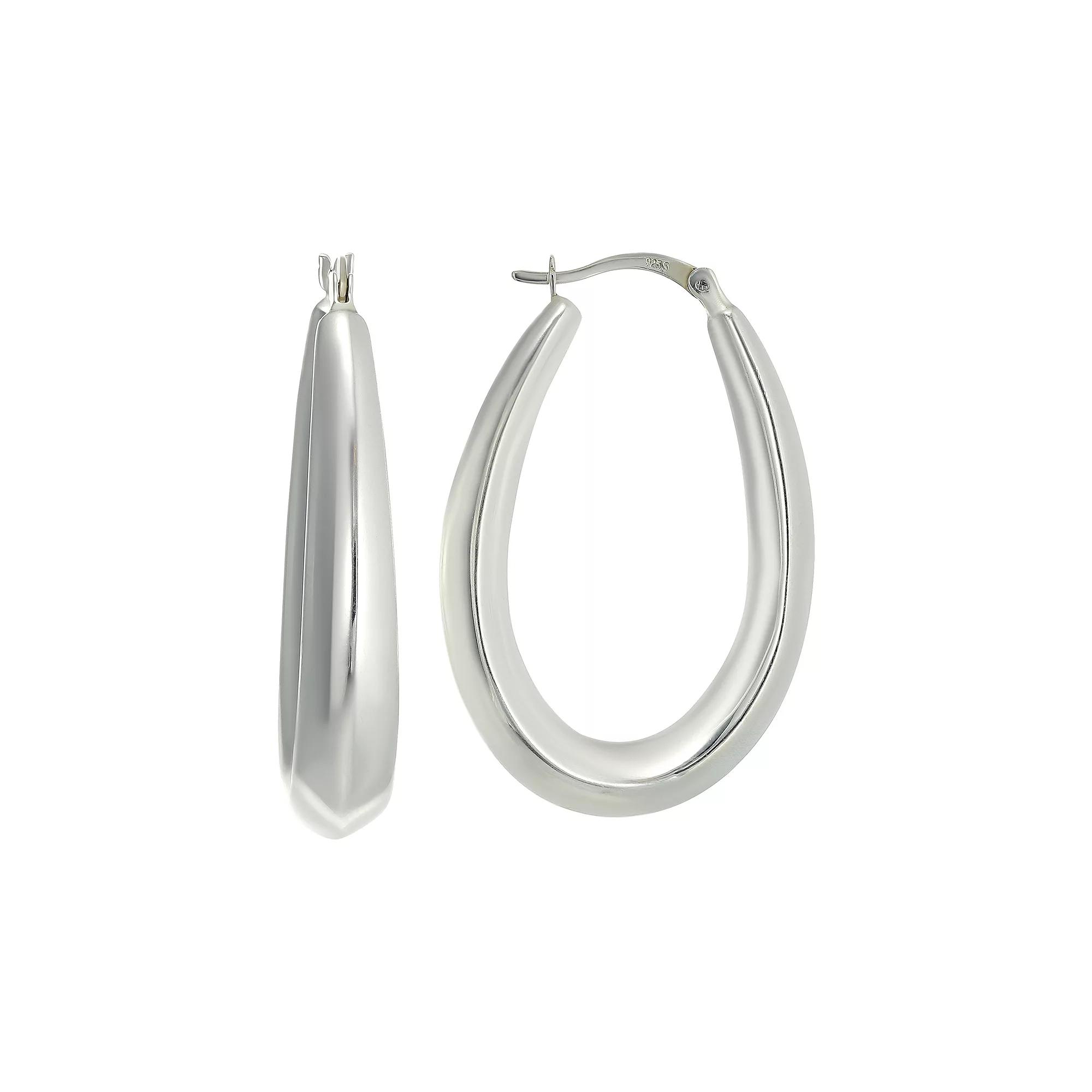 Love the way you look with these sterling silver tapered oval hoop earrings. Click on this JEWELRY & WATCHES GUIDE to learn about fit, styles, materials and more! Love the way you look with these sterling silver tapered oval hoop earrings. Click on this JEWELRY & WATCHES GUIDE to learn about fit, styles, materials and more! FEATURES Dimensions: 40 mm x 25 mm x 7 mm Backings: click-it Nickel free Metal: sterling silver Plating: e-coating Finish: polished Size: One Size. Color: Multicolor. Gender: female. Age Group: adult.