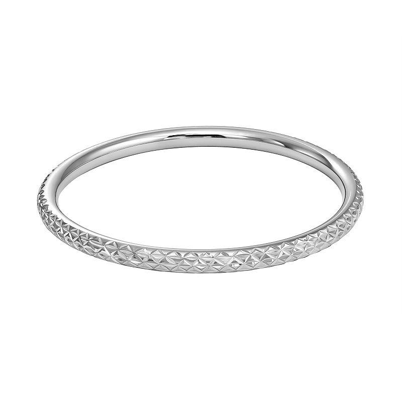 You will love the modern elegance of this sterling silver textured bangle bracelet. You will love the modern elegance of this sterling silver textured bangle bracelet. Length: 9 in. Metal: sterling silver Plating: Euro Finish: diamond-cut, polished Packaging: boxed Nickel free Size: 8". Color: White. Gender: female. Age Group: adult.