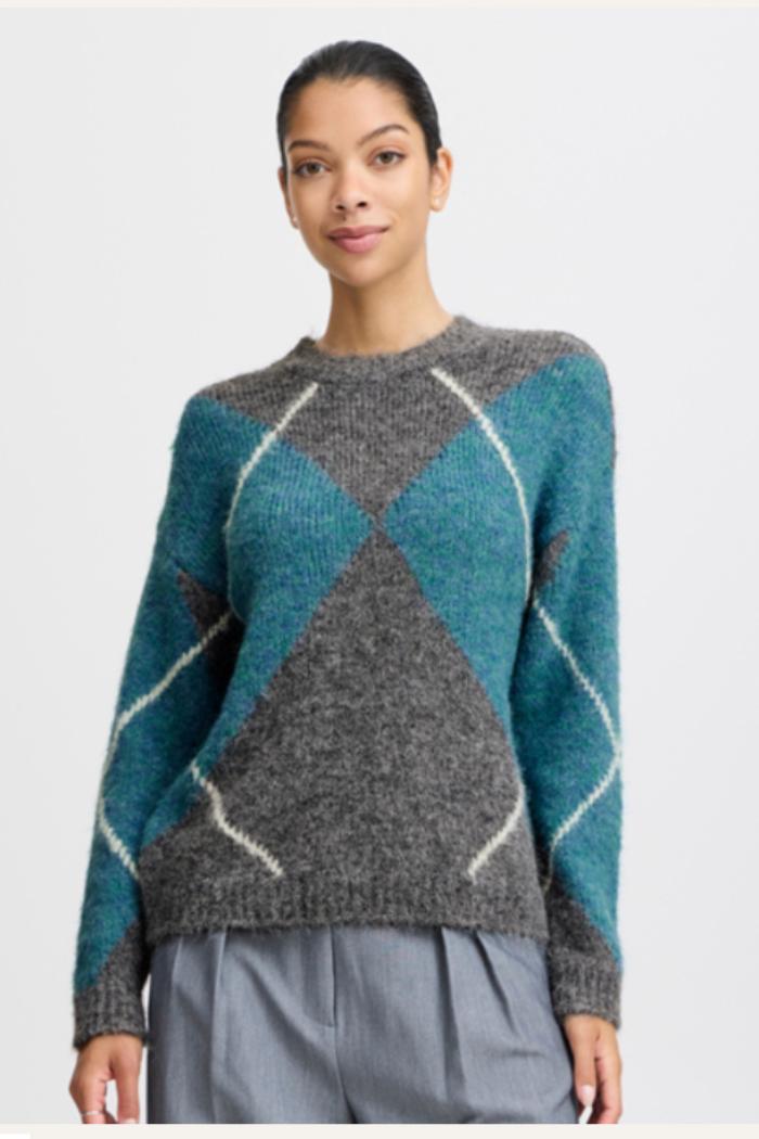 Super soft warm cozy long sleeve, crew neck, Argyle,Teal White and Black Sweater.